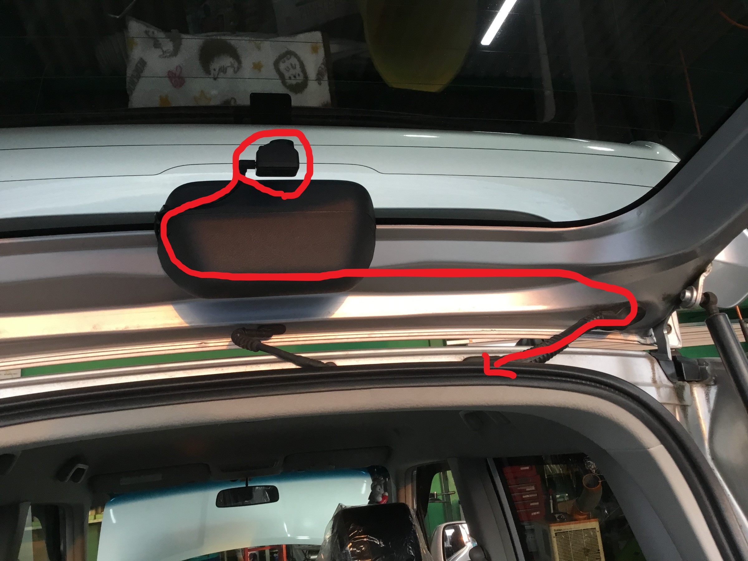 あとはリアゲートの骨組み内やジャバラブーツの中を通して、配線をできる限り見えないようにしながら室内に引き込みますヾ(゚д゚)ノ゛