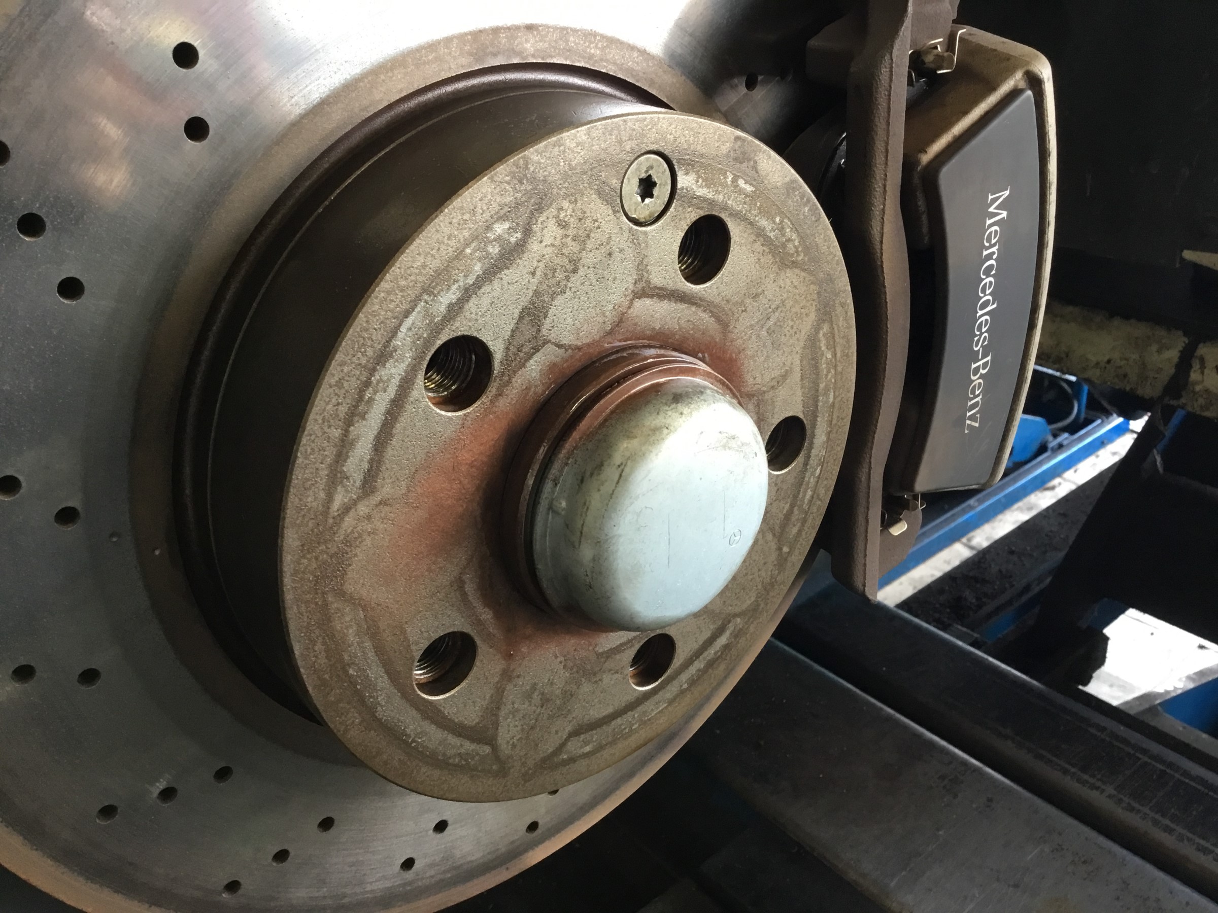 ホイールの中心位置出しに大事なハブはサビを削り落として、防錆剤&耐熱グリスでしっかり保護!(`・ω´・)ノ"