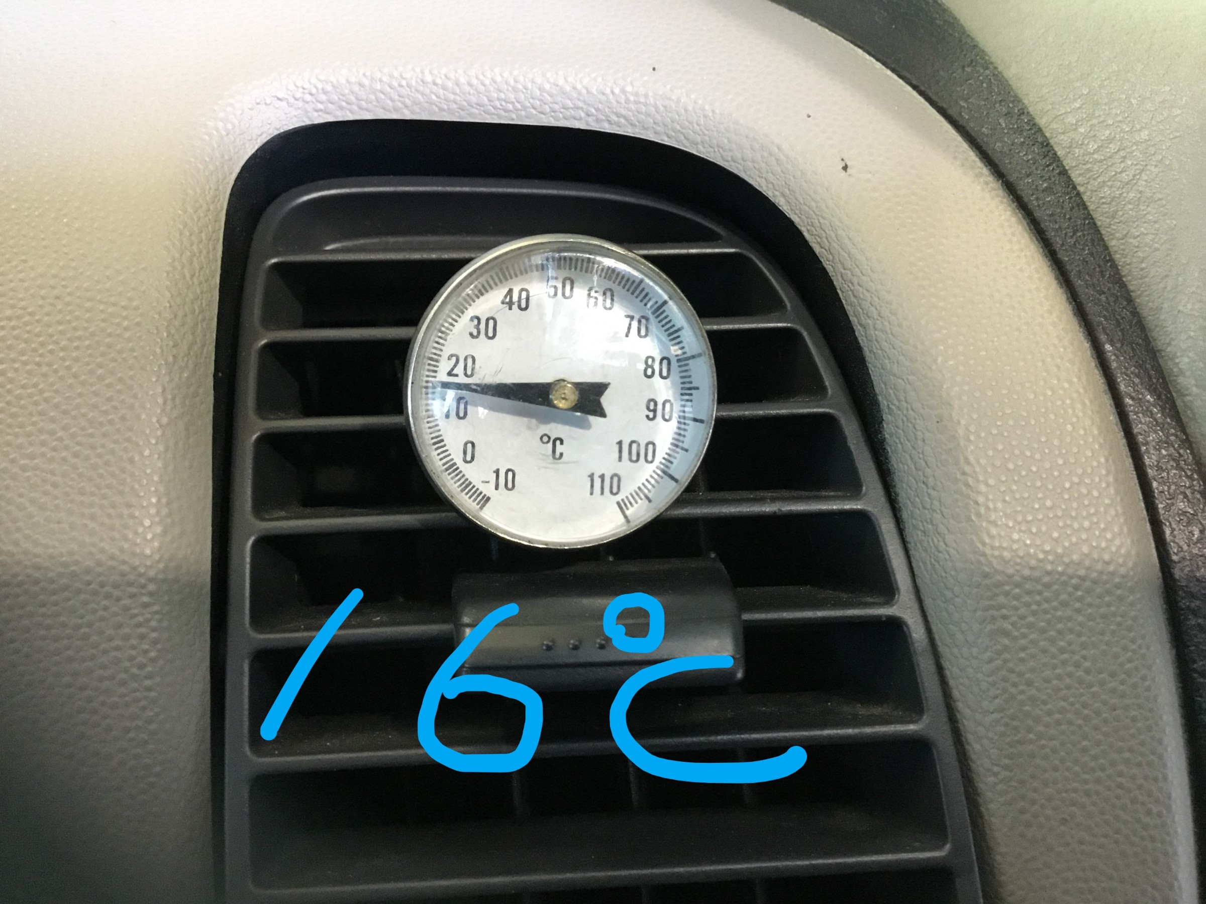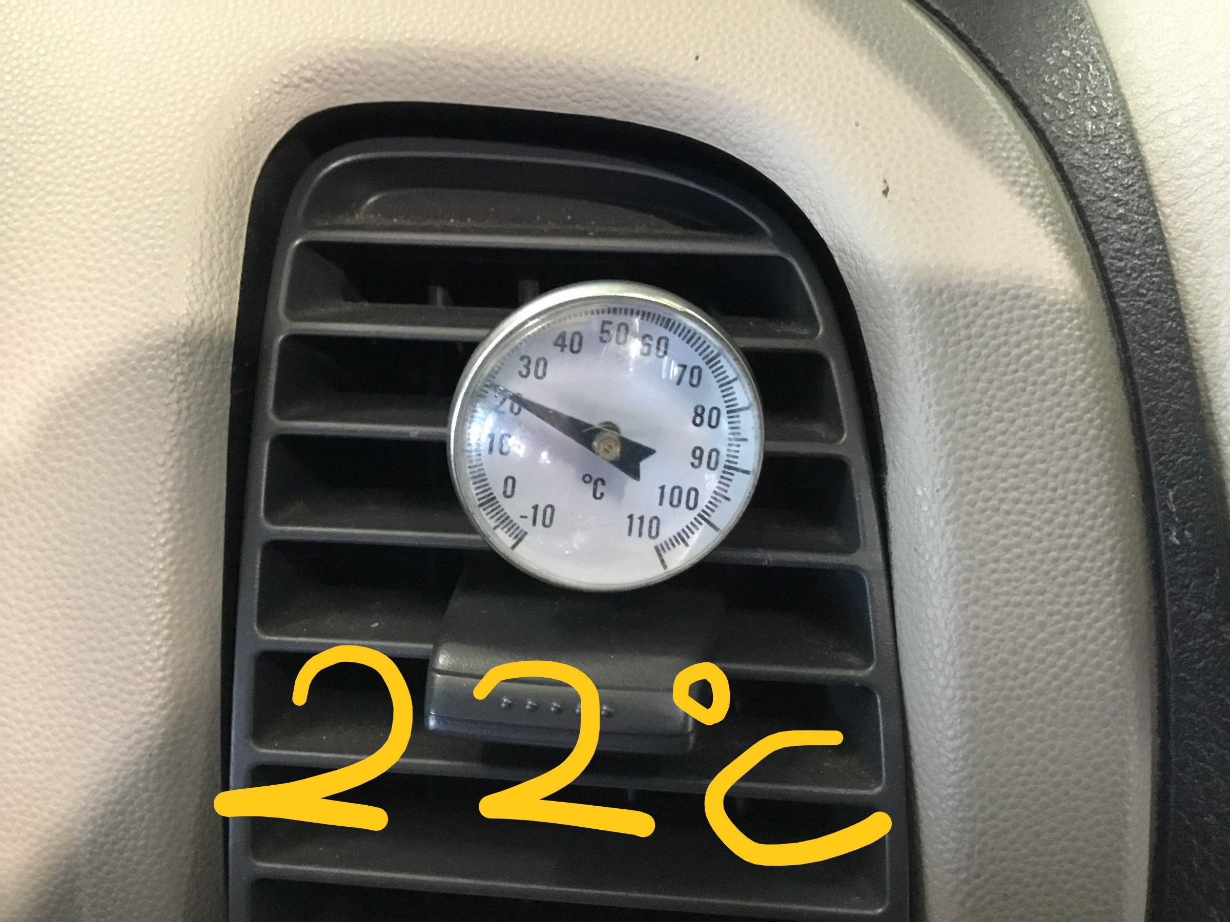 こちらのお車ですが、エアコンの冷風を最低に設定しても22℃!