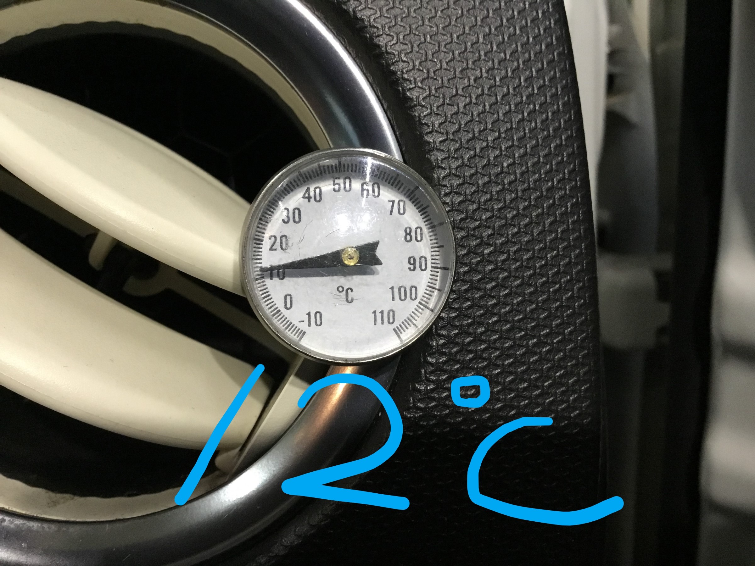 現状で12℃の冷風ですが、もっと冷えるように添加剤を注入します(`・ω・´)
