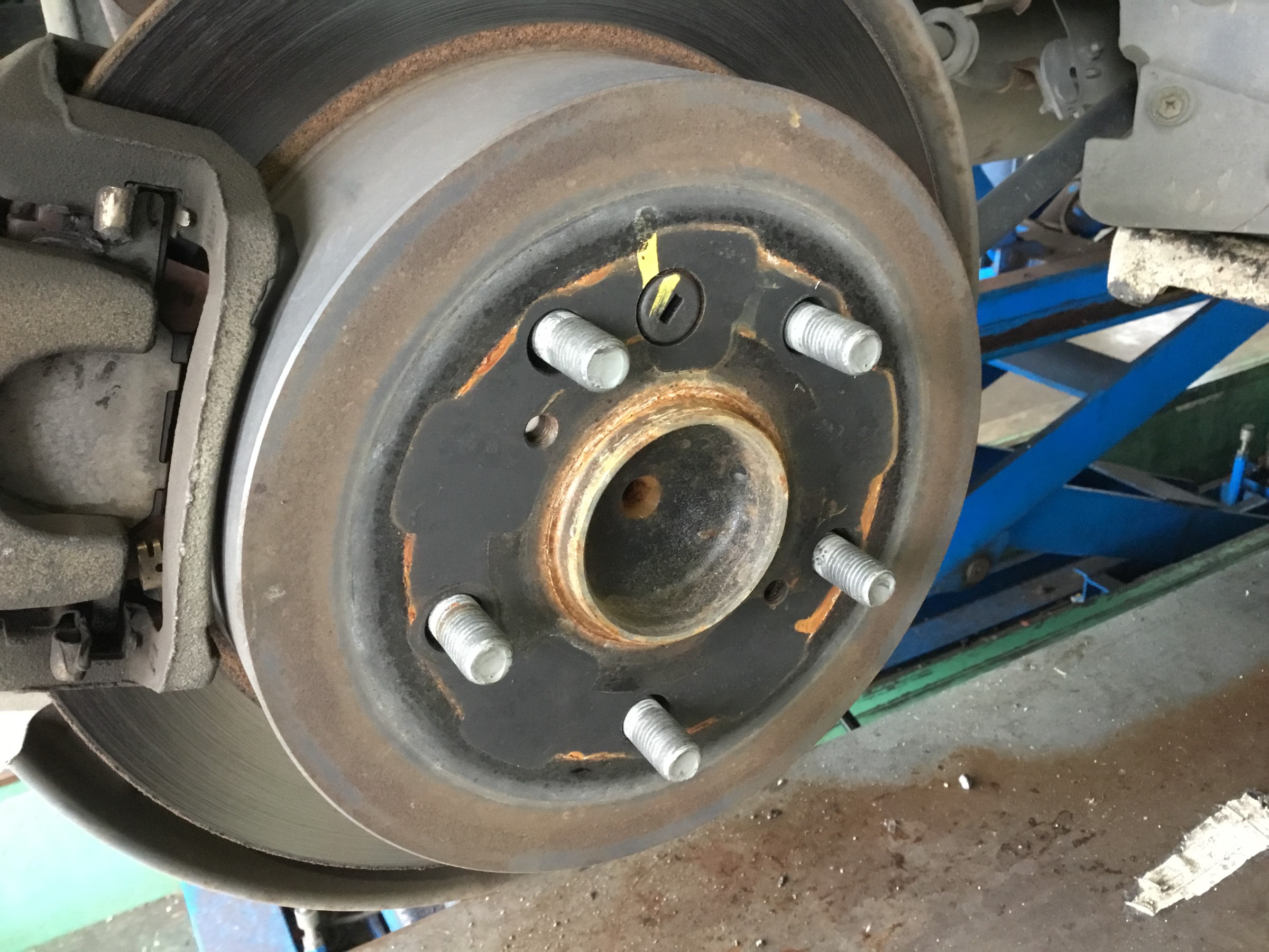ホイールを外すと、ホイール装着部である“ハブ”にサビが!!