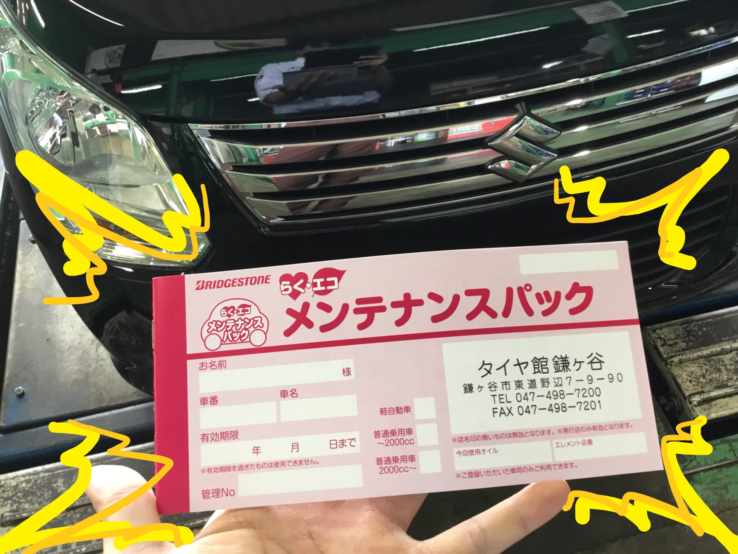 今回はお得にお車のメンテナンスができる「らく・エコ メンテナンスパック」をお買い上げいただきました!(*゚∀゚)
