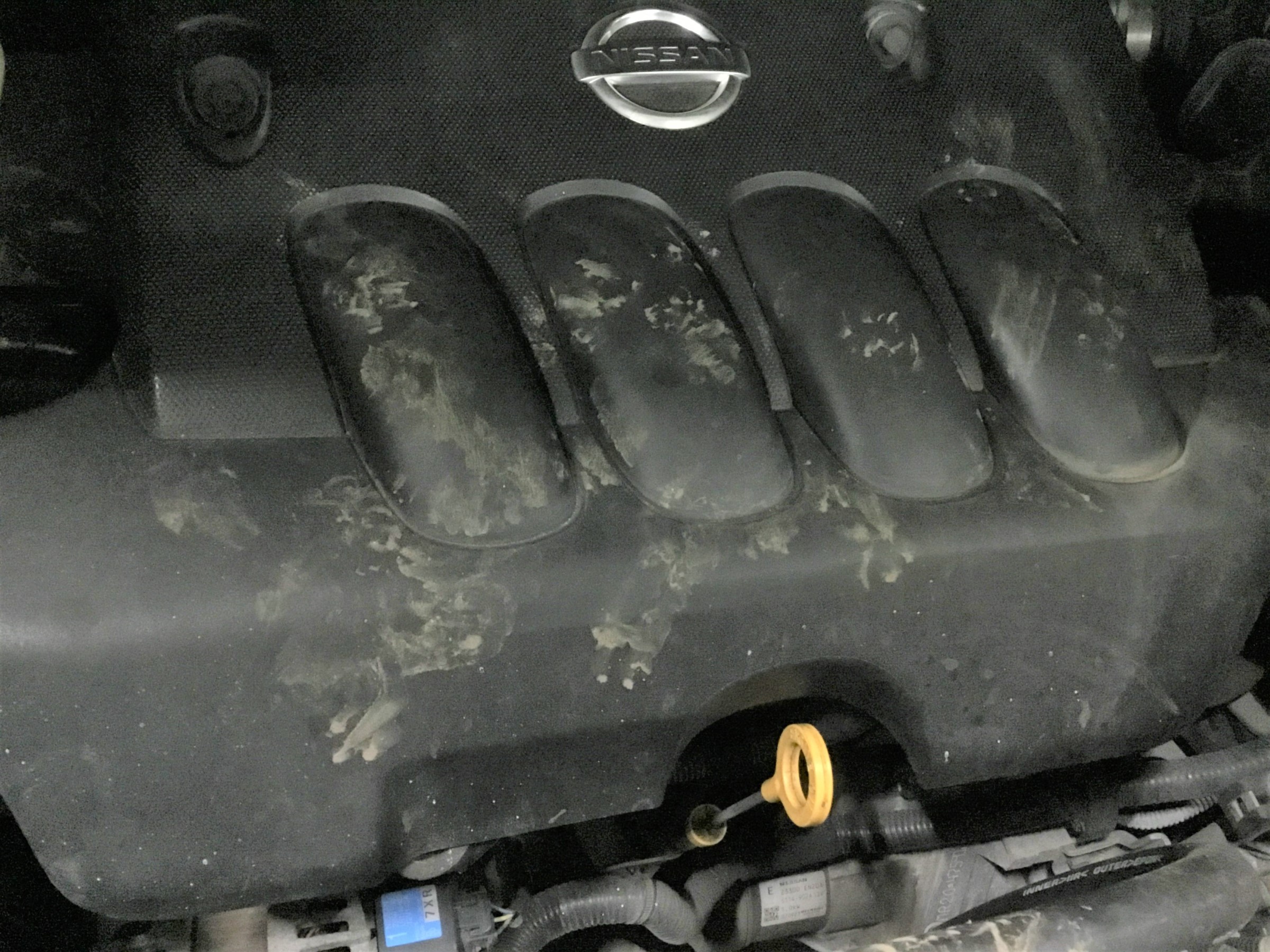 寒くなると見かけることの多い、エンジンルーム内のねこさんの足跡!(ΦωΦ)