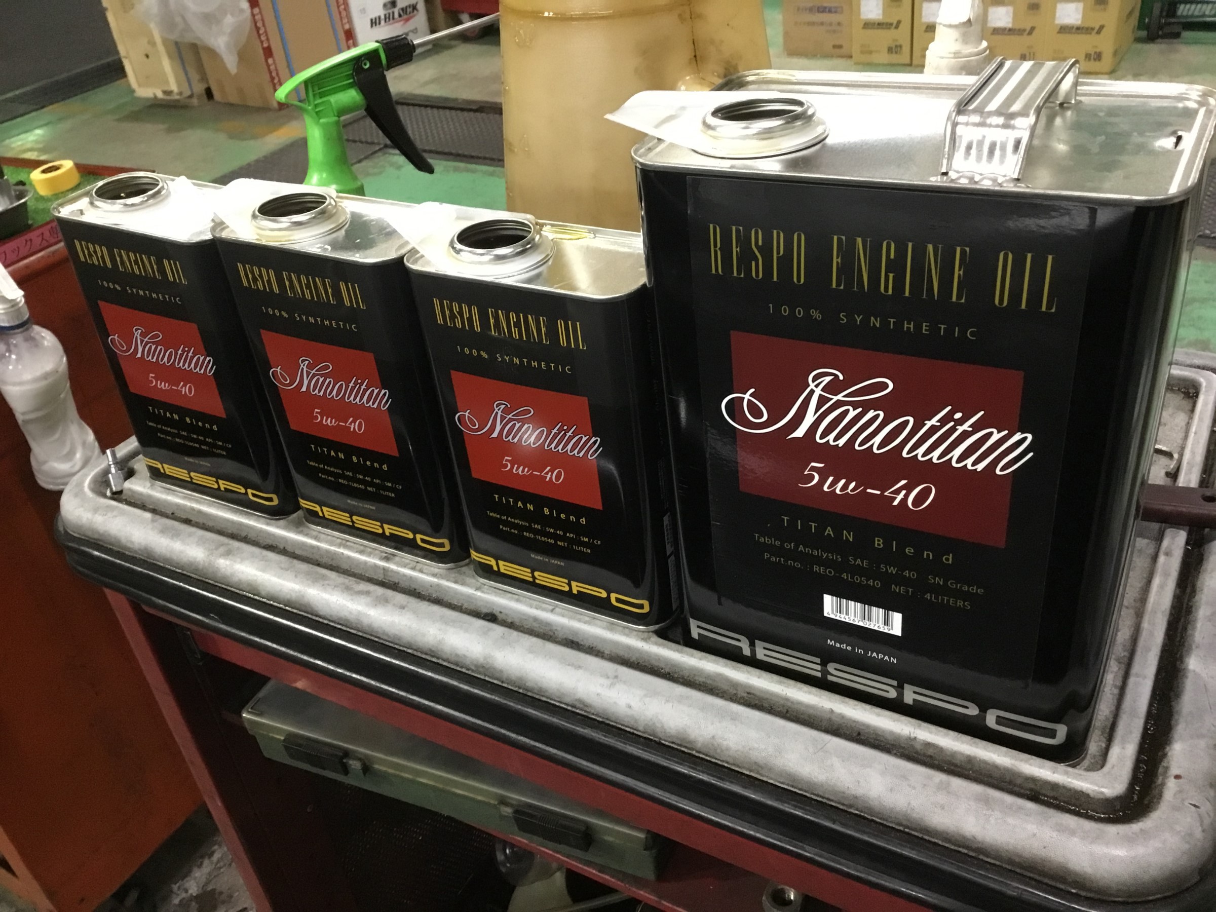 いつも使用させていただいているエンジンオイルは、RESPOのナノチタン[5w-40]!