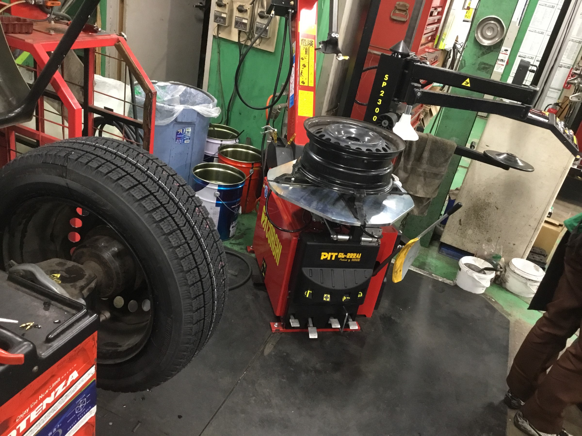 現状のスチールホイールからサマータイヤを取り外し、スタッドレスタイヤを組付け中!(ΦωΦ)