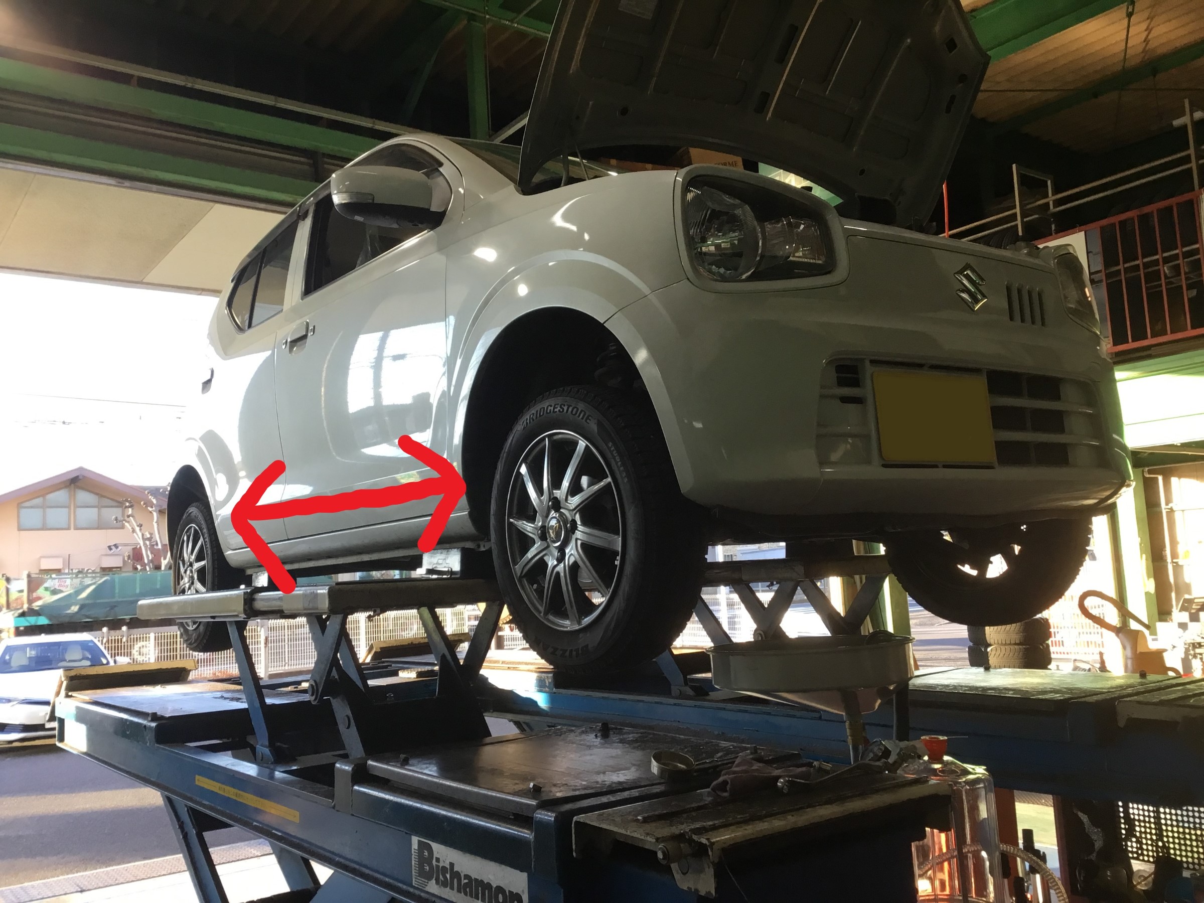 HA36S型アルト、高性能オイルASHでオイル交換&タイヤローテーション!