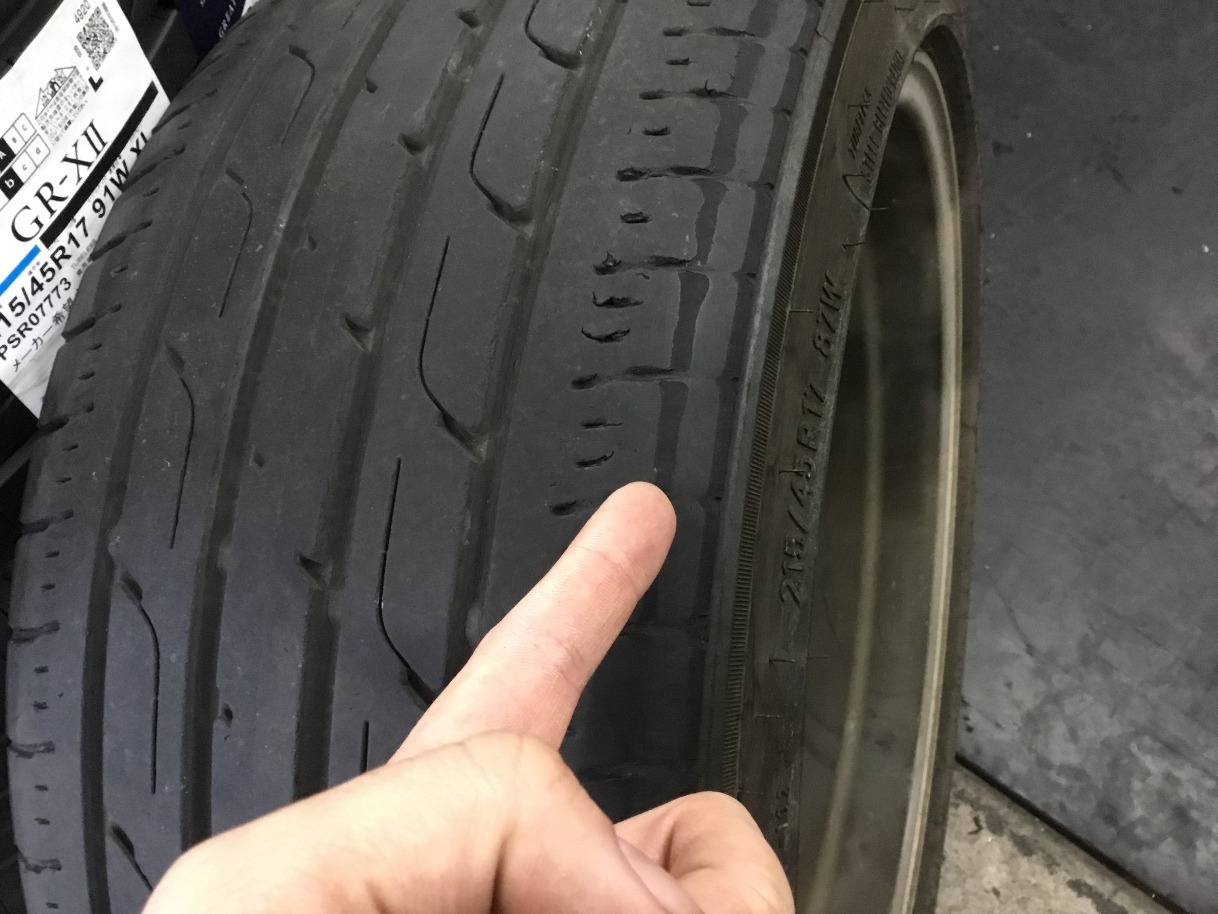 今まで使用されていたタイヤは内側と外側が結構摩耗しています!↑は外側!