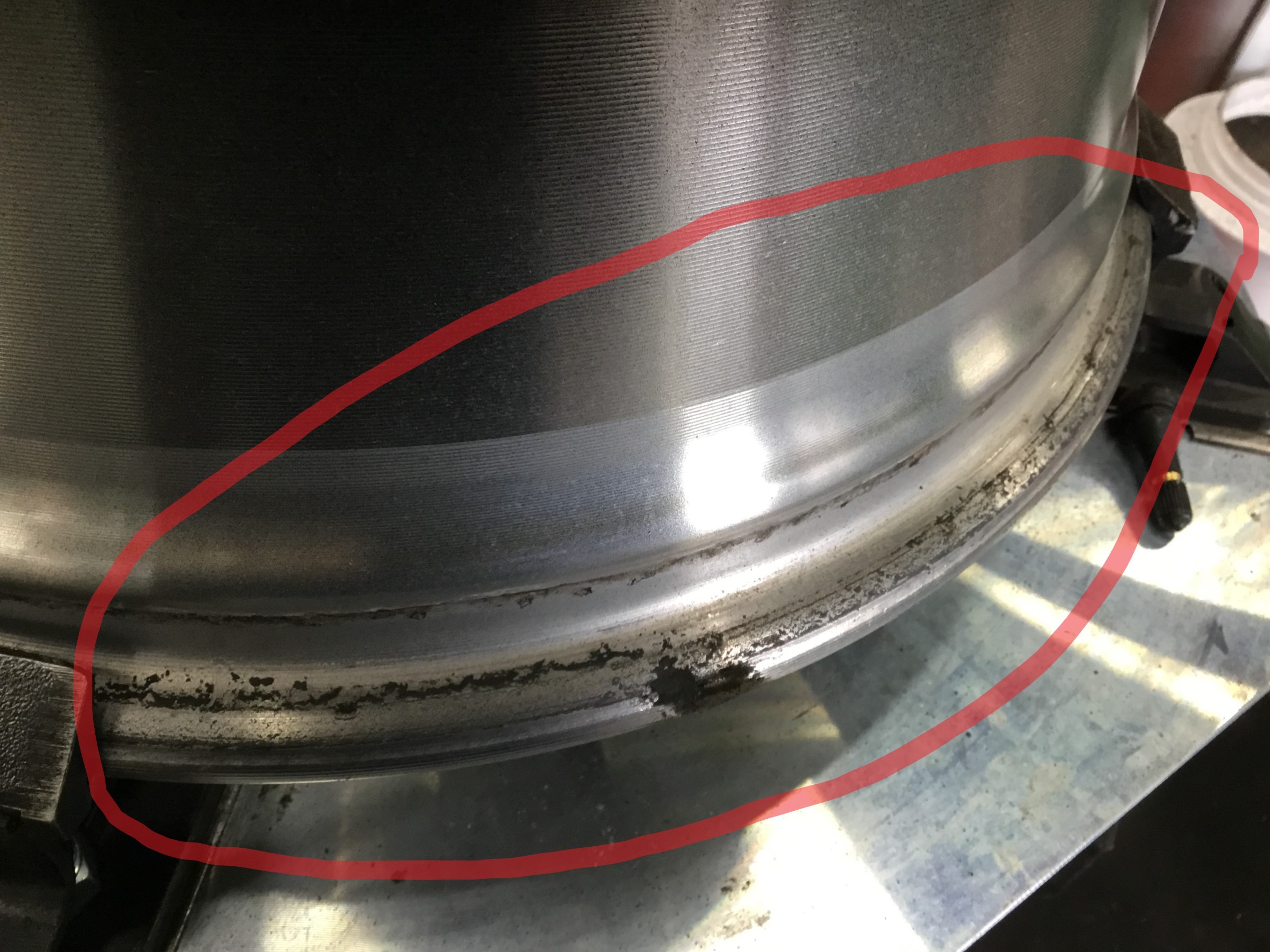 タイヤと密着する面にはこのように汚れが溜まります(;´・ω・)ここを掃除しないでタイヤを組むオートショップもありまして、ここの汚れや腐食の見逃しが原因で空気漏れが起きてご来店されるお客様もとても多いんです・・・