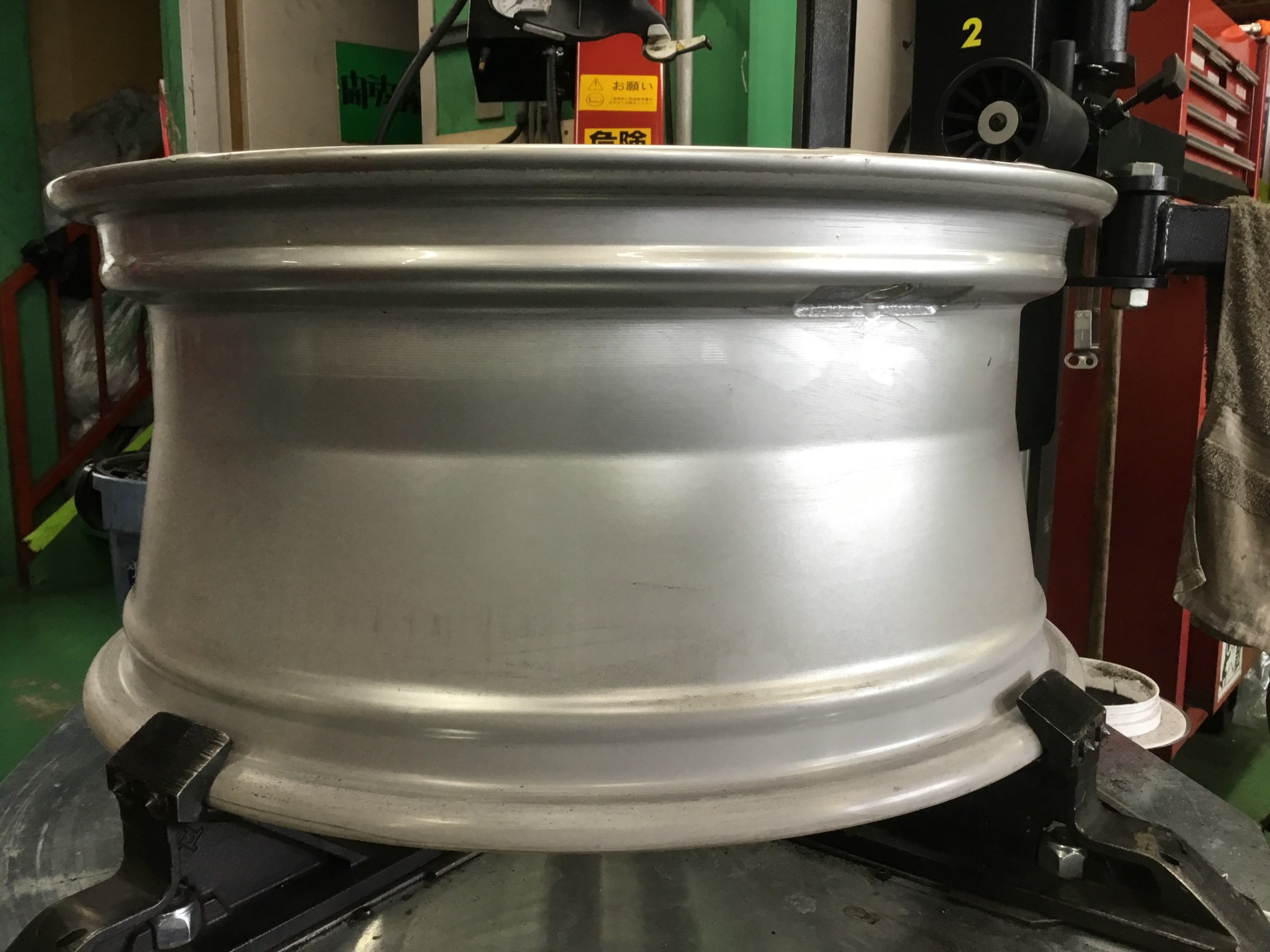 一昔前はどんな扁平タイヤでもタイヤレバー1本で強引に組むのが職人っぽく見られるような時代もあったようですが、今はこういった機材を駆使して丁寧にタイヤを組むことがカッコイイ時代です!!ヽ(゚∀゚)メ(゚∀゚)ノ