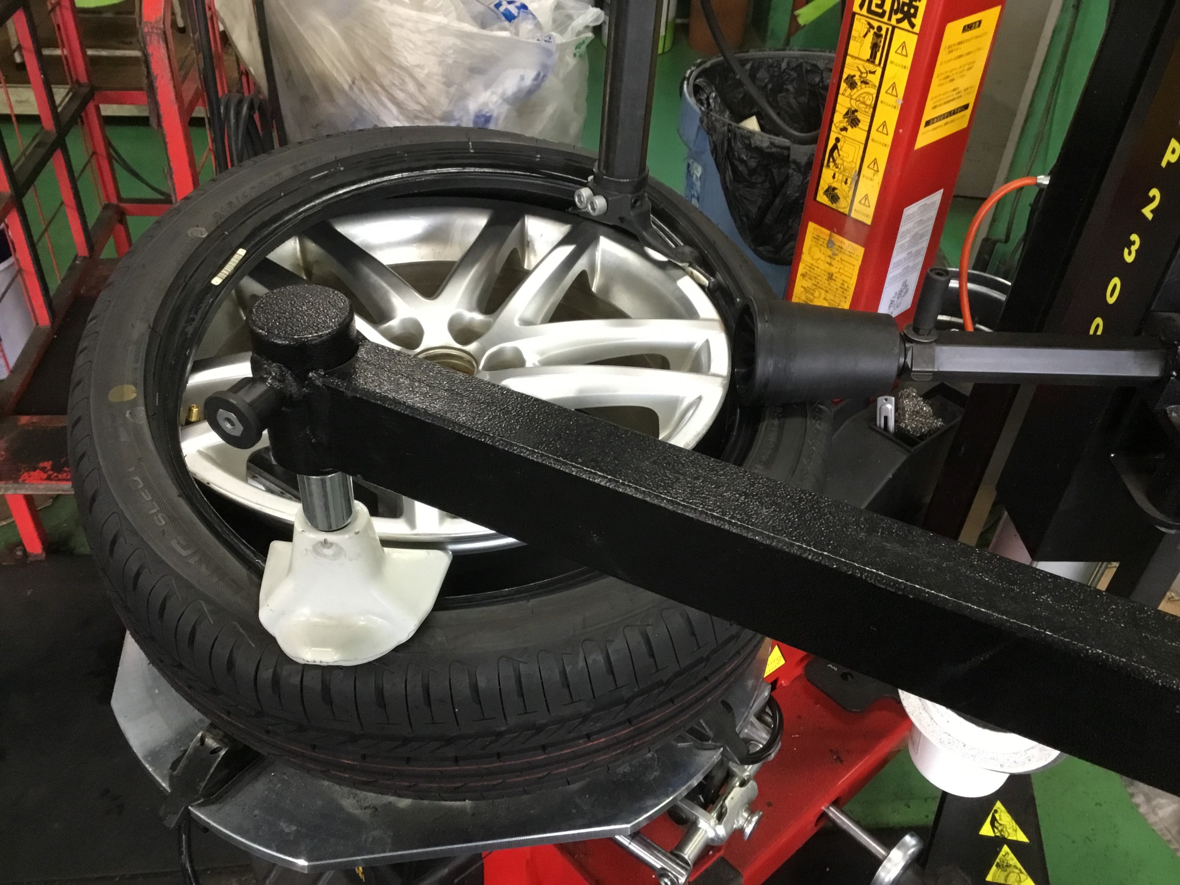 しかしタイヤ館鎌ヶ谷では写真のように、ホイールに優しくタイヤを組めるチェンジャーを使用しているのでその点は安心です( `^ω^)=3