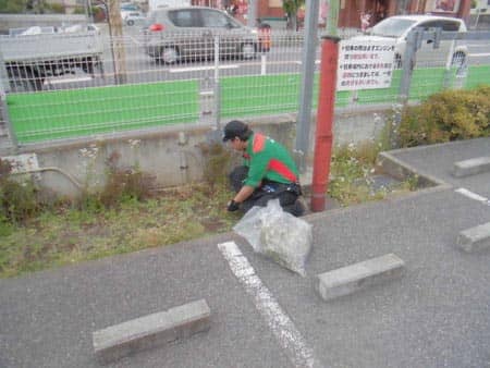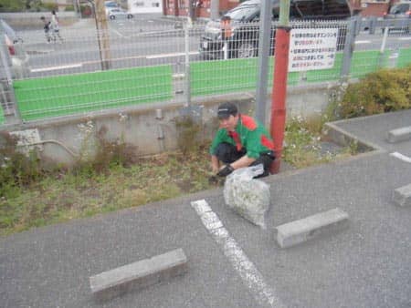今日はスタッフが駐車場の草刈りをしているところを激写しました!