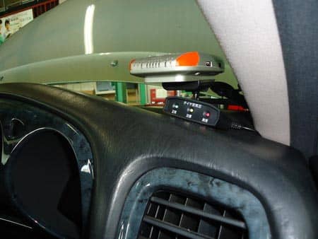 ホイールにセンサーをつけて、車内に受信機をつけます。