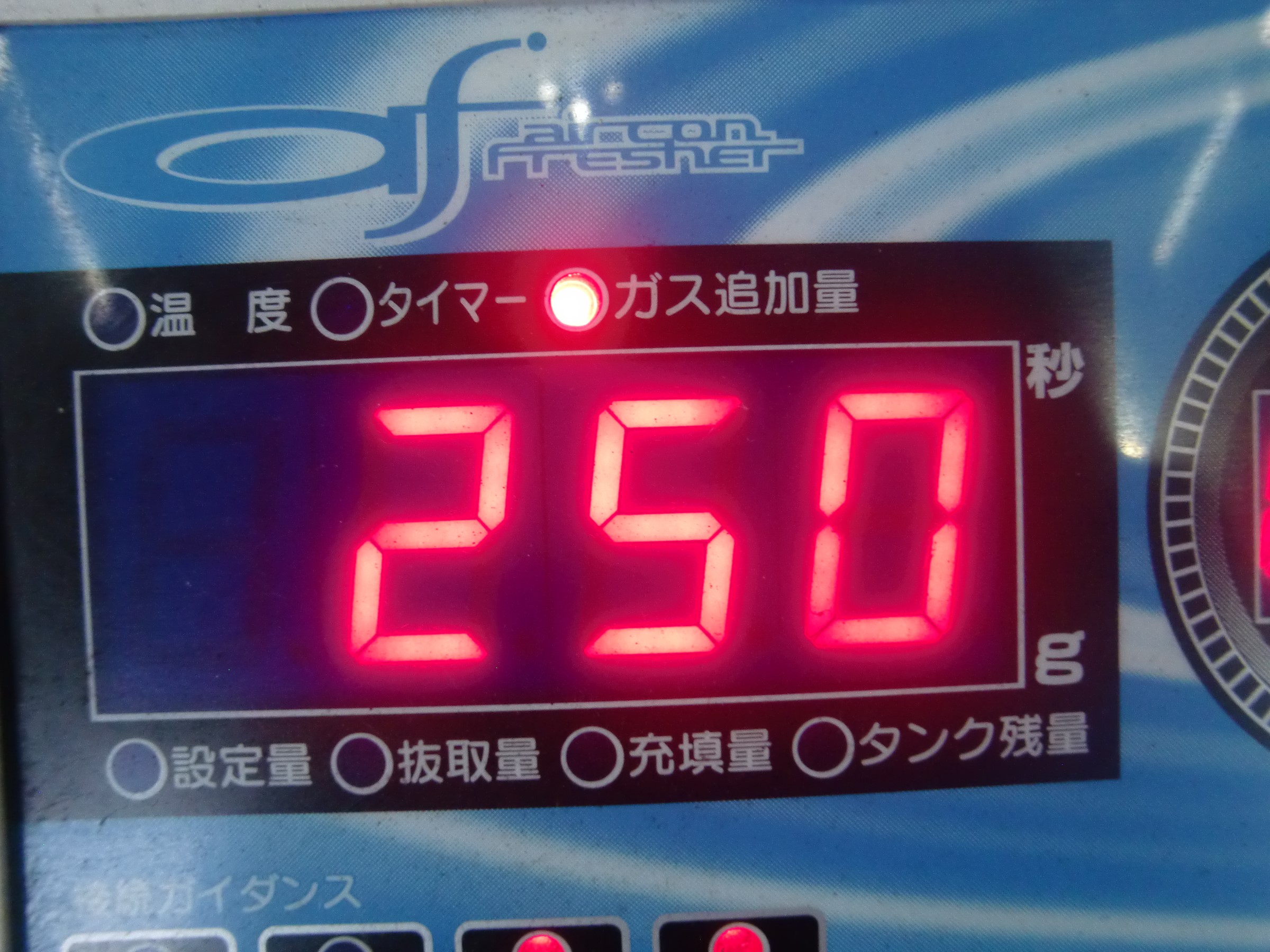 こちらの車両は320±30gのエアコンガス量が必要ですが・・・