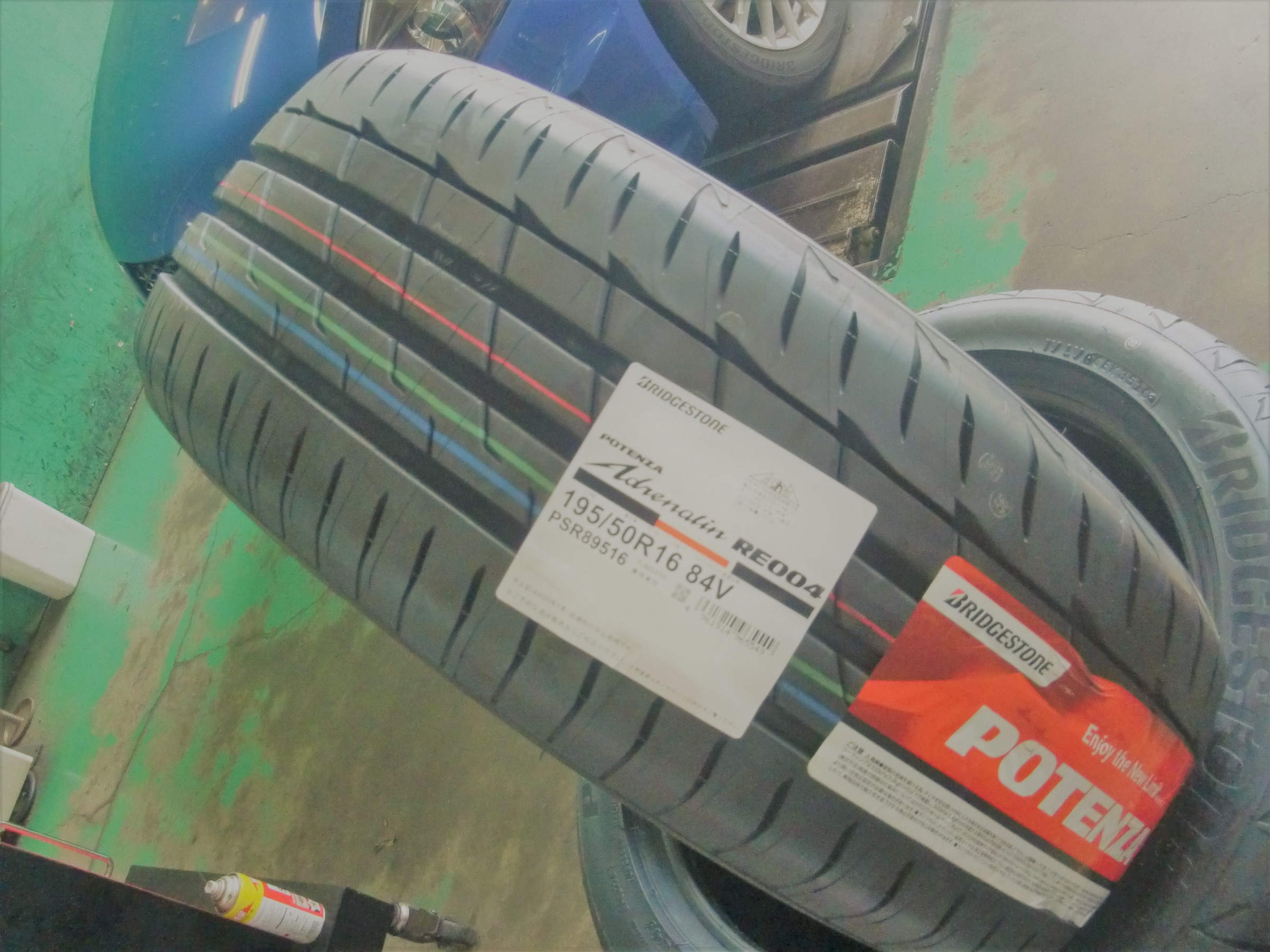 今回お取り付けさせていただくタイヤは、ブリヂストンのPOTENZA Adrenalin RE004[195/50R16]!!ヾ( ^ω^)ノ