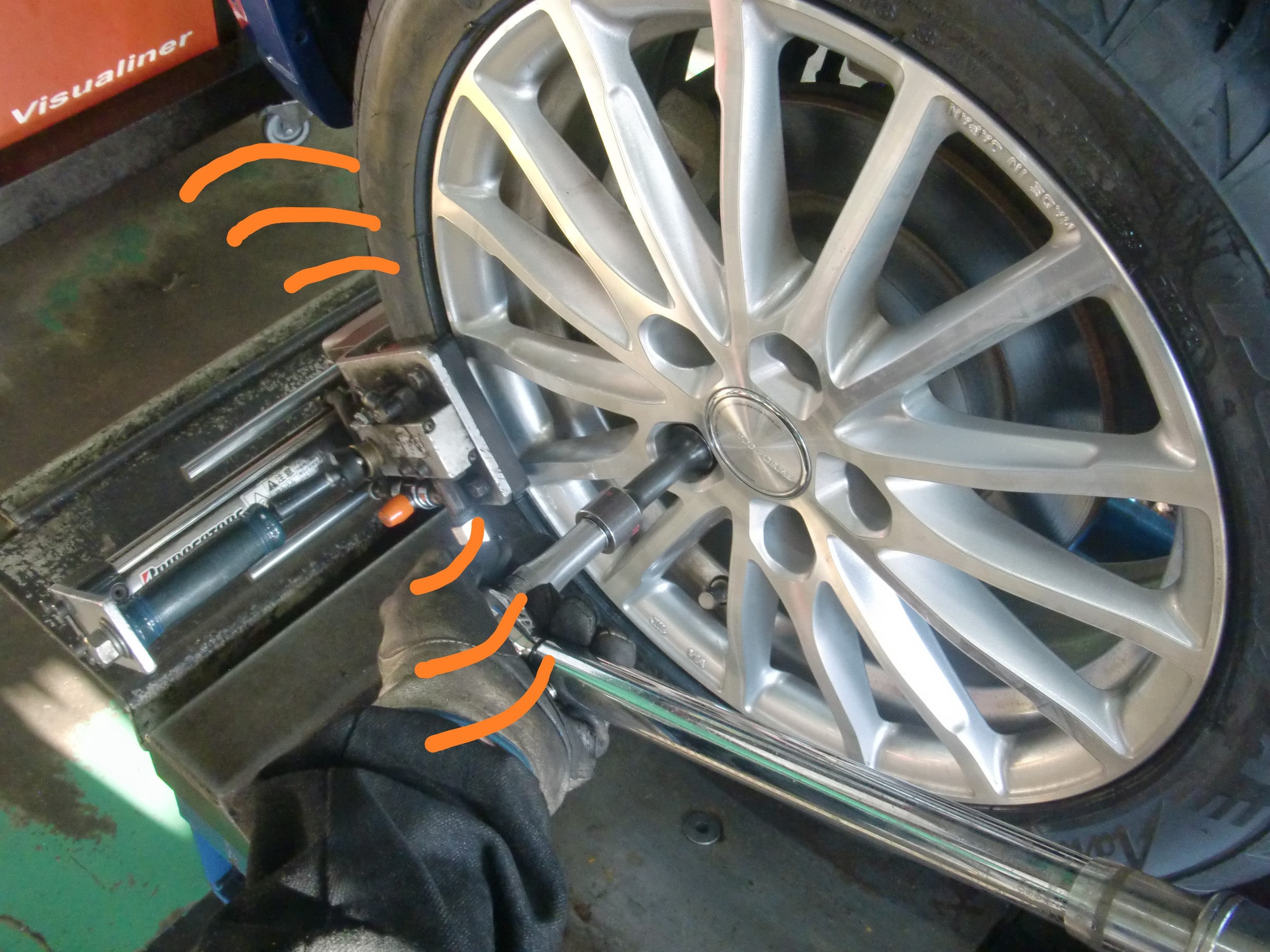 普段の走行でズレてしまっているタイヤの角度の修正作業!
