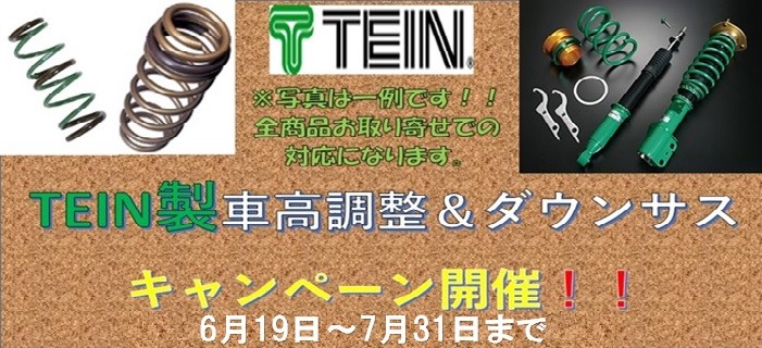 6月19日~7月31日の期間、今年も好評だった、TEIN車高調キャンペーンを開催致します!