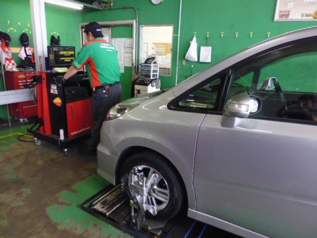 本日は朝一からステップワゴンのアライメント作業を