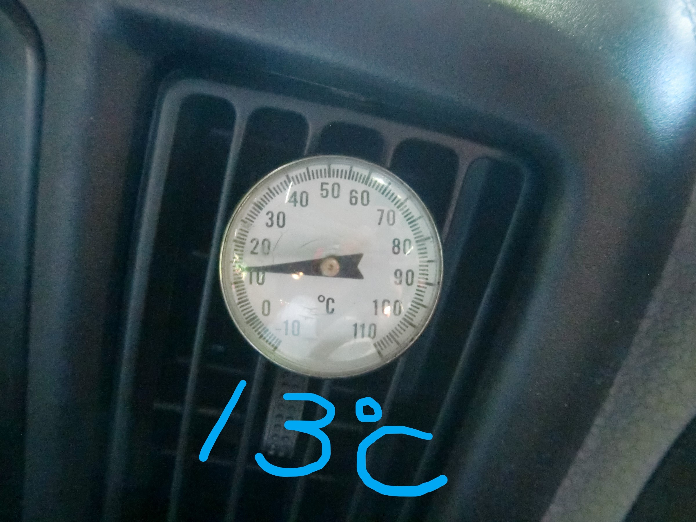 正常なガス量を補充されたミライースは13℃の冷風を出してくれるようになりましたっ!!ヽ(゚∀゚)メ(゚∀゚)ノ これで夏も怖くないっ!!