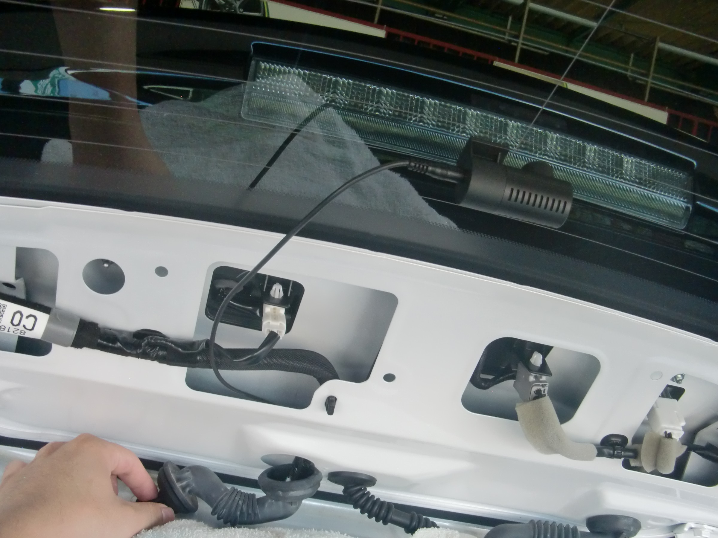 リアカメラの配線はゲート内を通し、ジャバラの中から配線を室内に引き込んで取り付け!