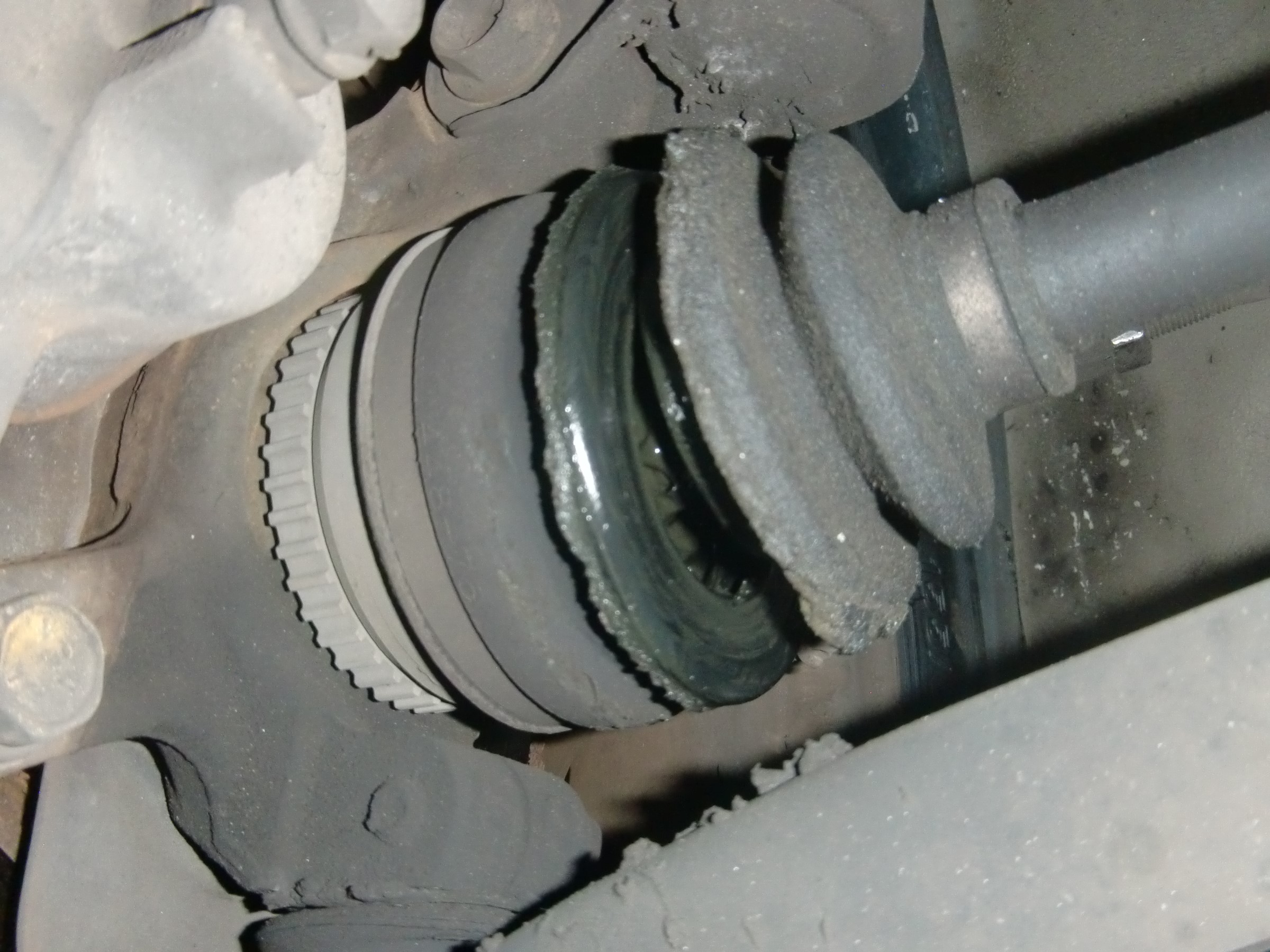 ドライブシャフトブーツ(タイヤを回すシャフトの関節部分のゴムカバー)がバックリと割れています!