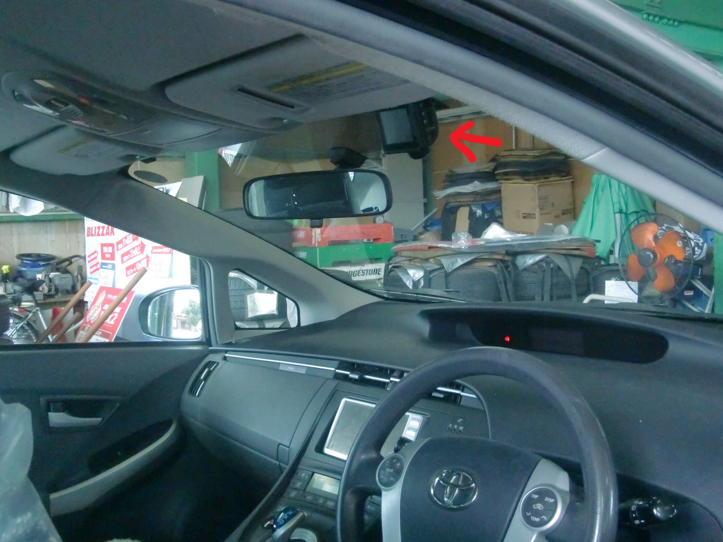 お客様と相談させていただき、“ワイパーの通り道で、車内も映って、操作もしやすい場所”ということでコチラに装着させていただきました(っ´∀`)っ