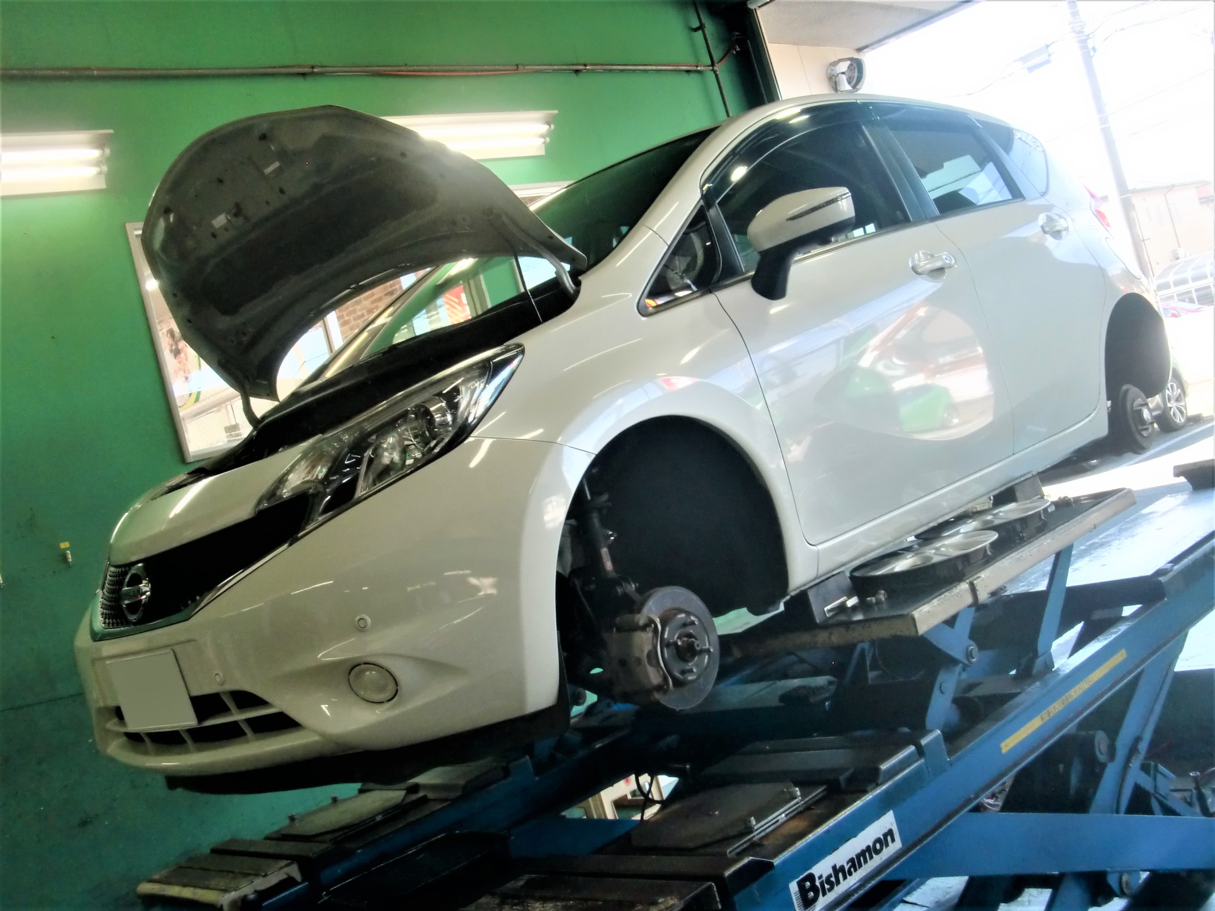E12型ノート、夏タイヤ交換&アライメント調整&エンジンオイル交換!