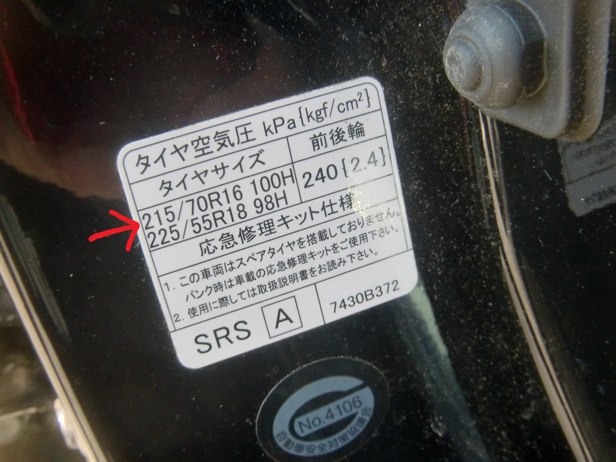夏タイヤは18インチが装着されていましたが、スタッドレスタイヤはドア内側にも表記されている16インチにインチダウンさせていただいてのお取り付けにさせていただきます(=゚ω゚)ノ