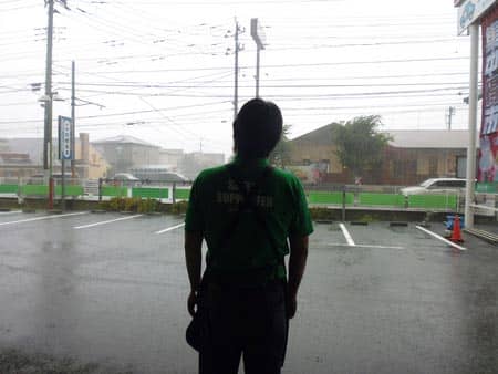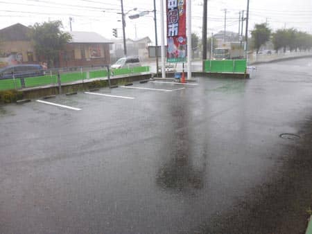 ピットの中に居ても雨が降り注いでくるので、床の水を