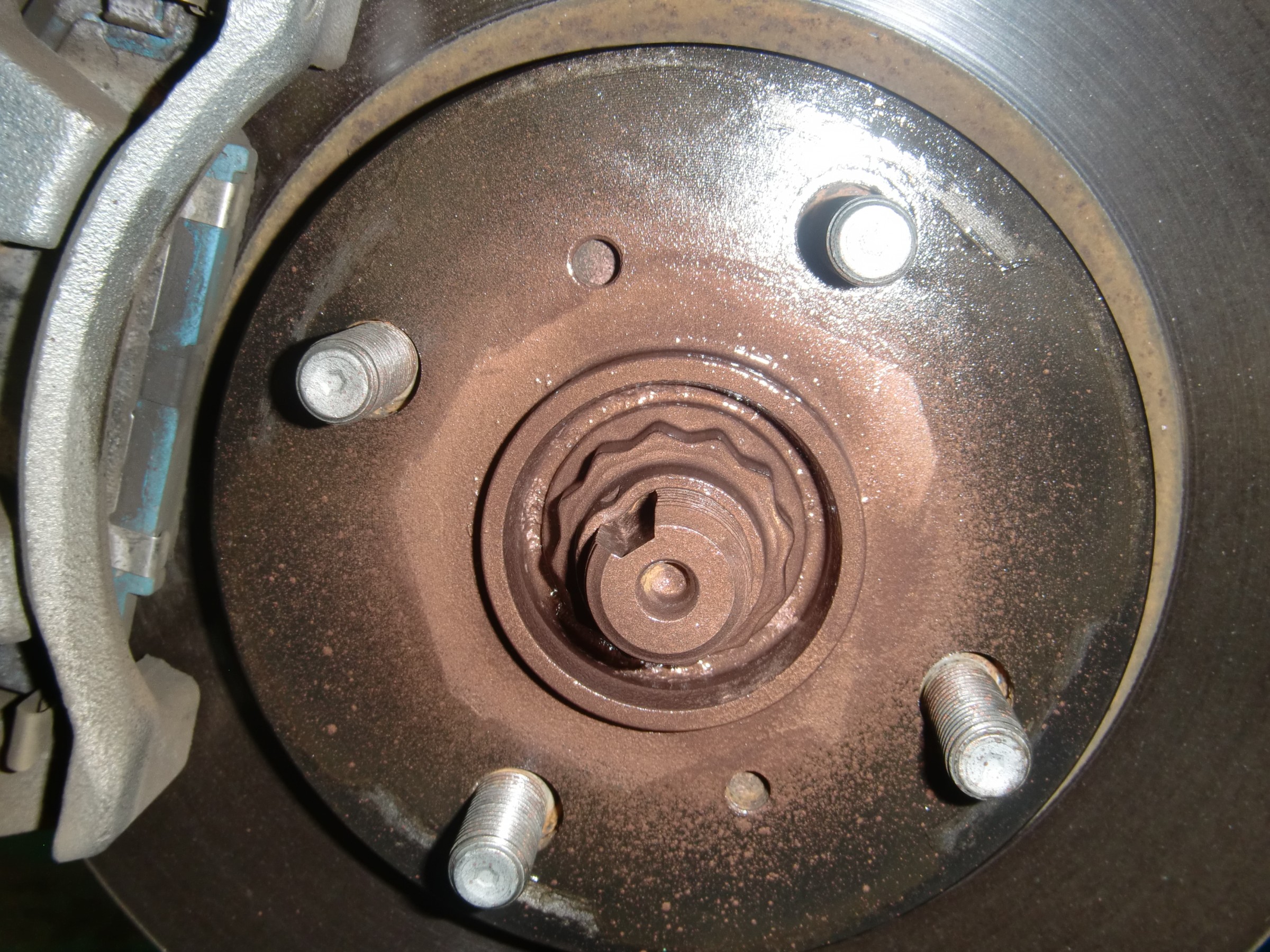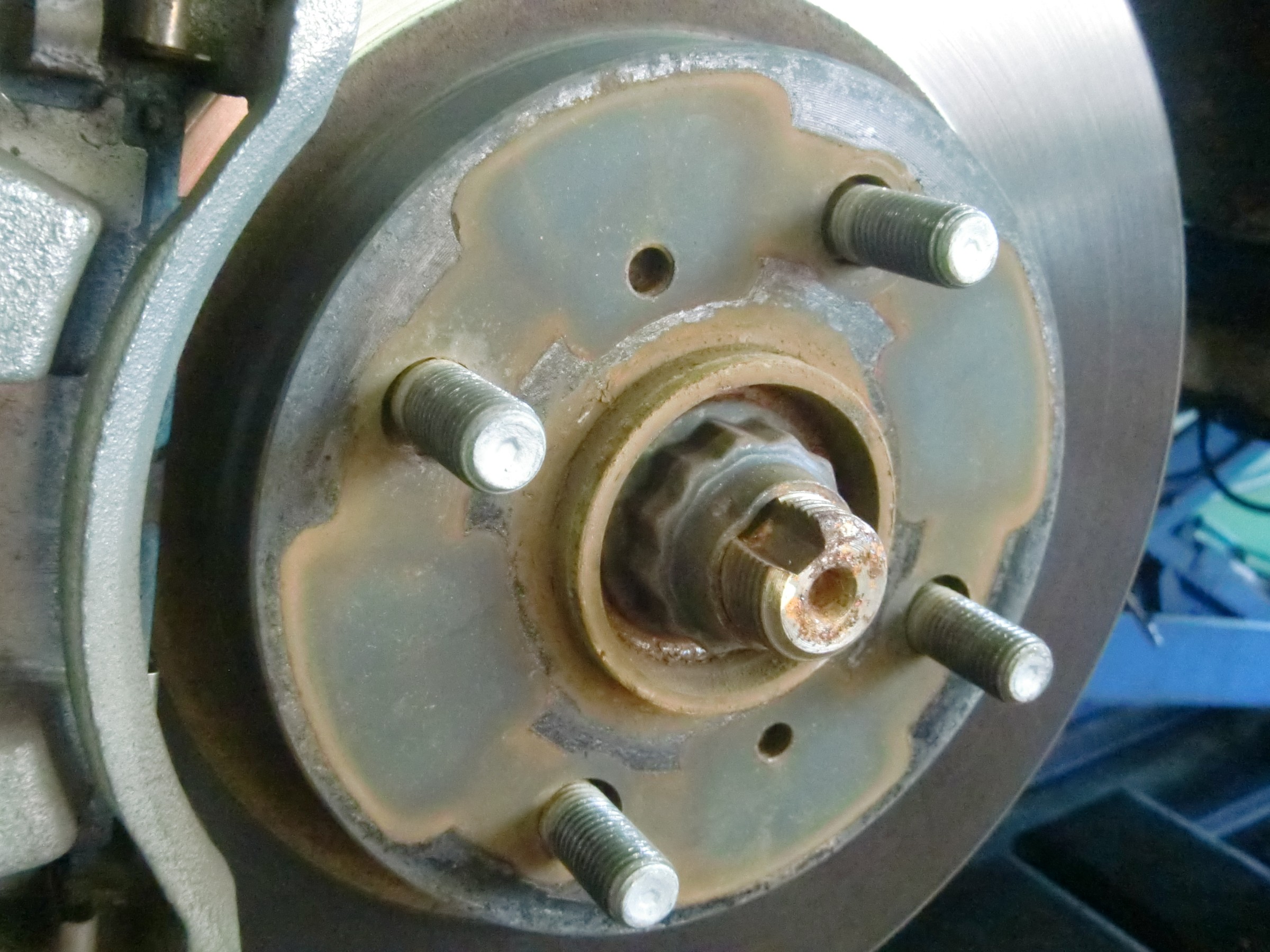 ホイールが装着される部分のハブ周辺は、雨水が溜まりやすいのでサビが発生中・・・!!
