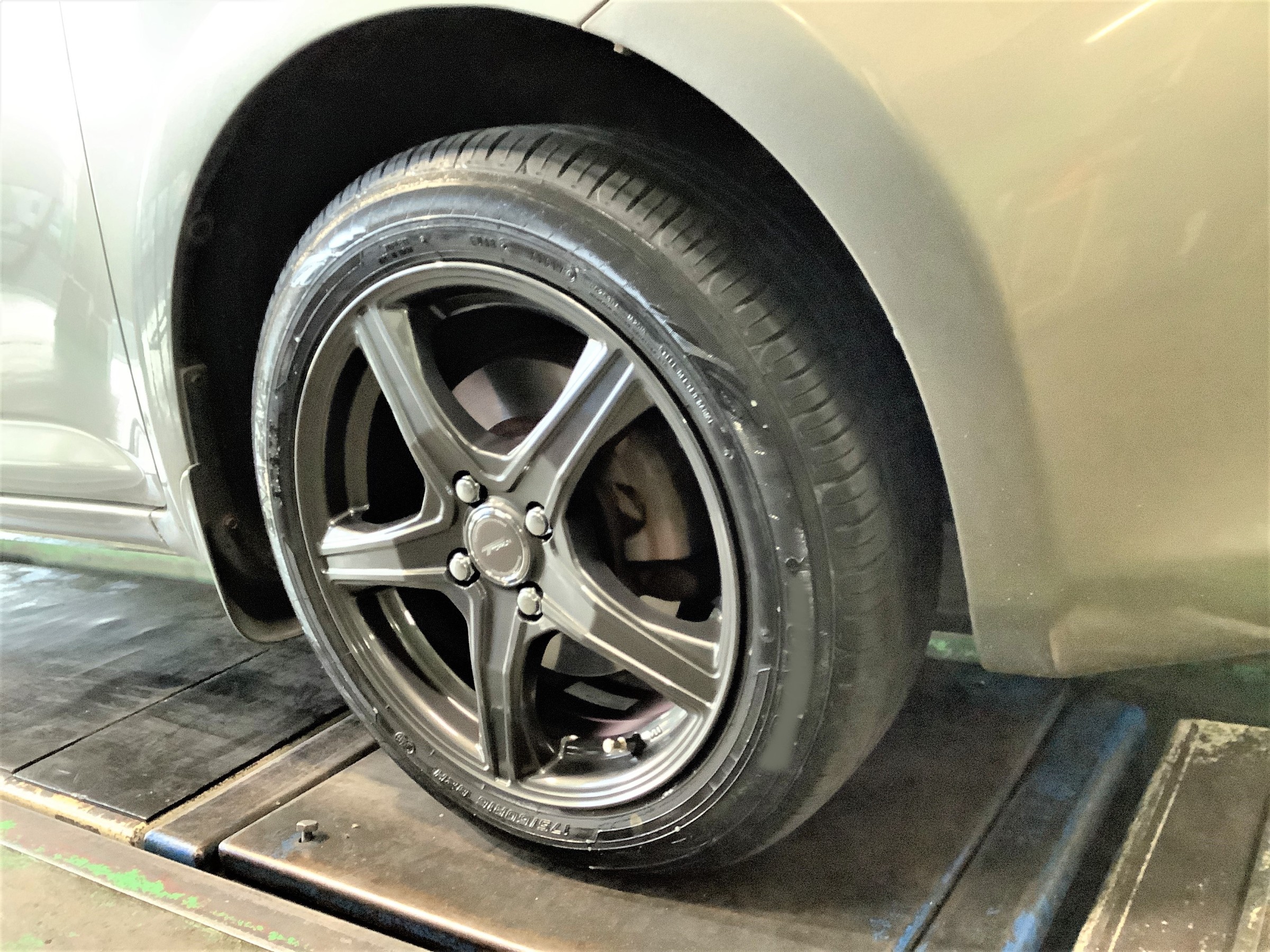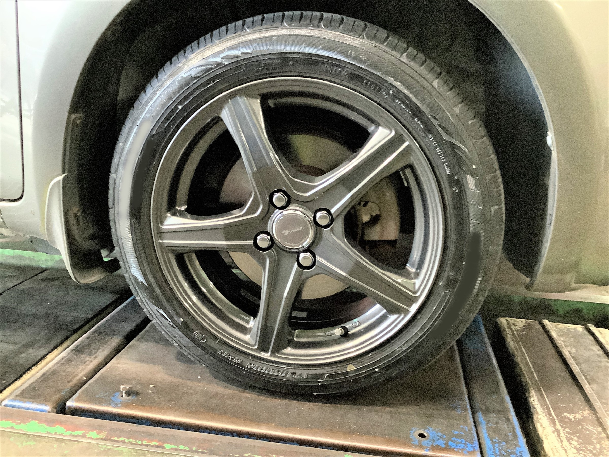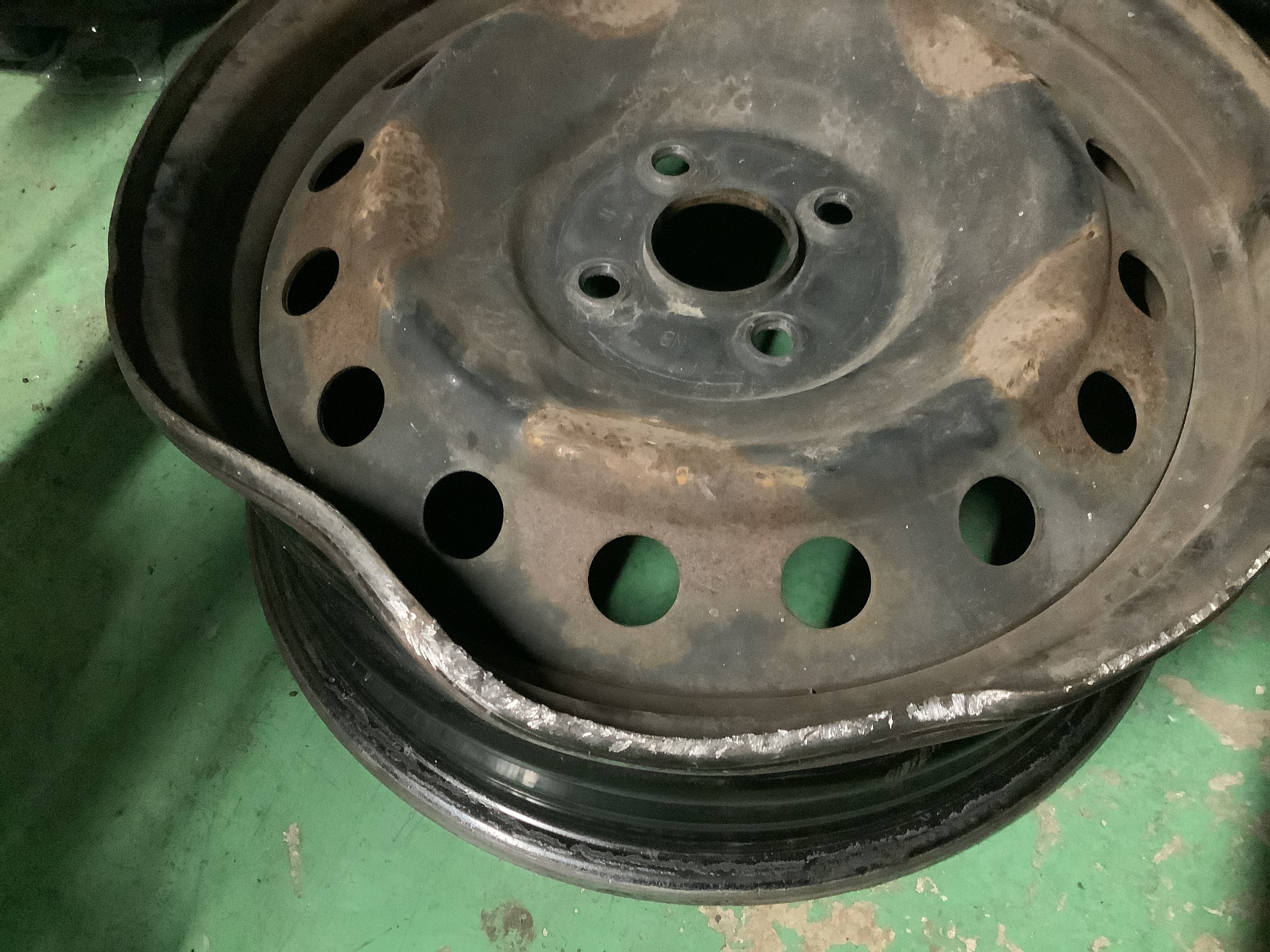 ご来店されたときはスペアタイヤに履きかえられていまして、車に積んでいたタイヤはスチールのホイールが曲がっていて要交換の状態でした(;´・ω・)