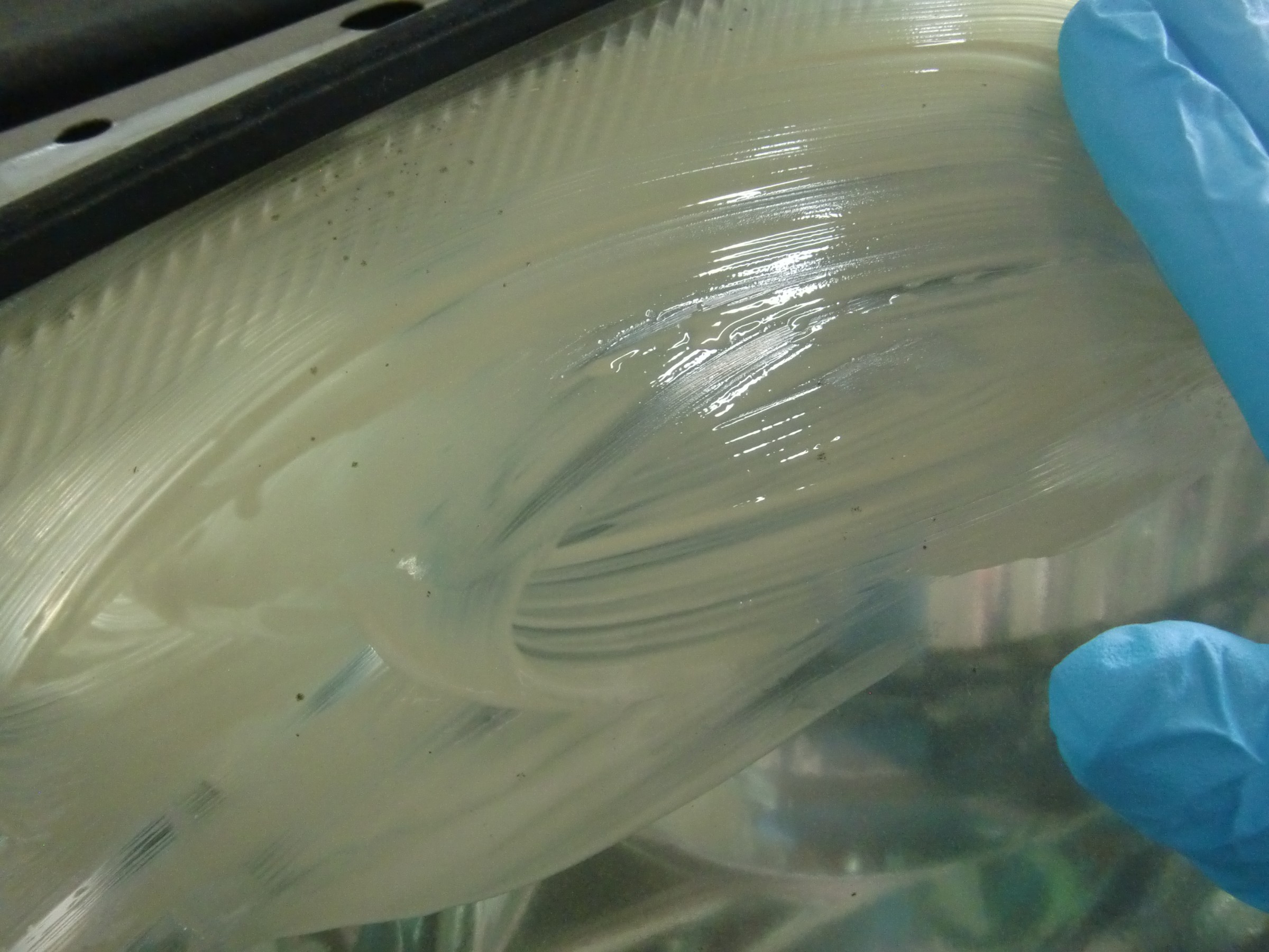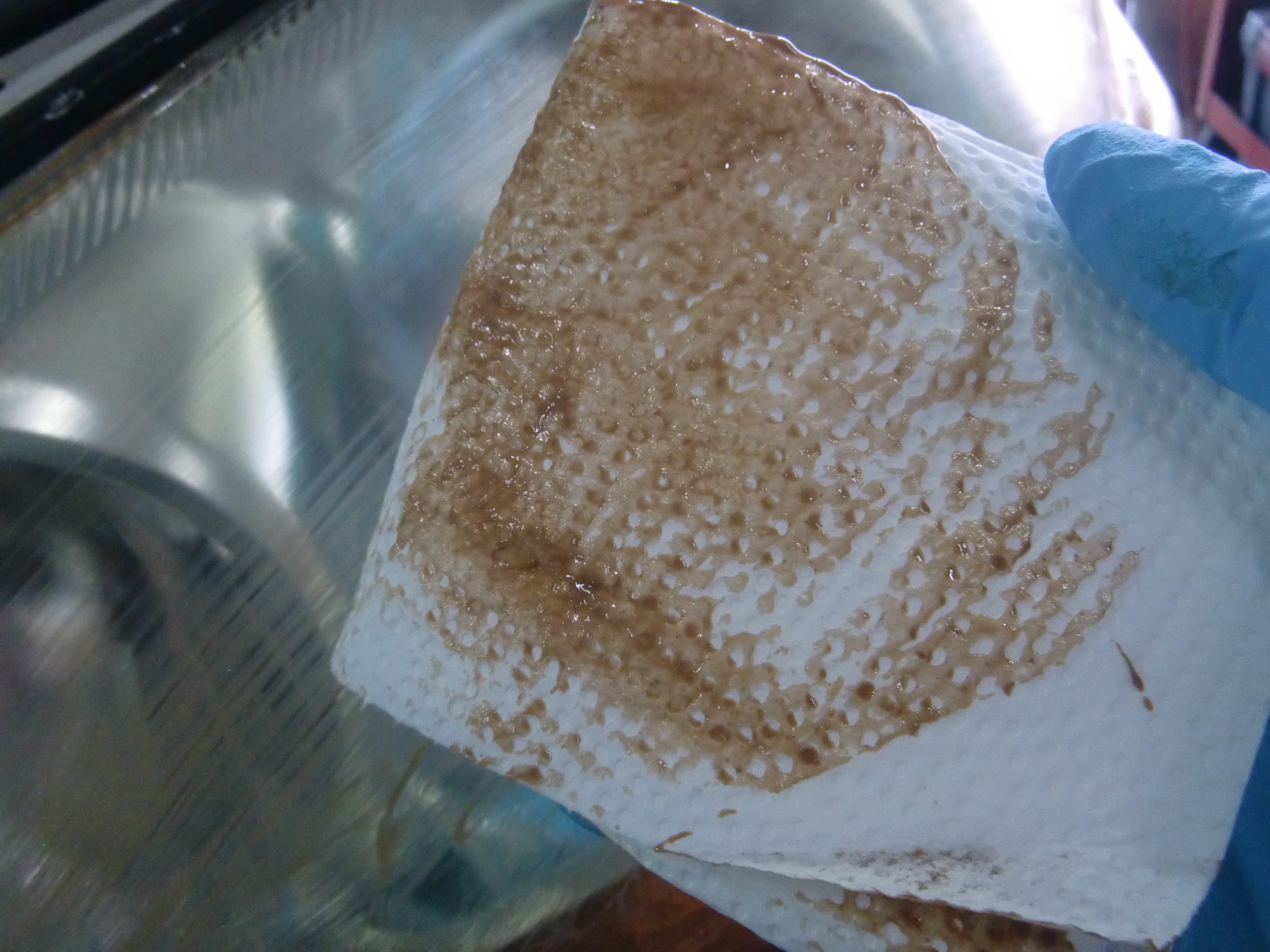 汚れが浮き出てきて、白かった液剤があっという間に変色!