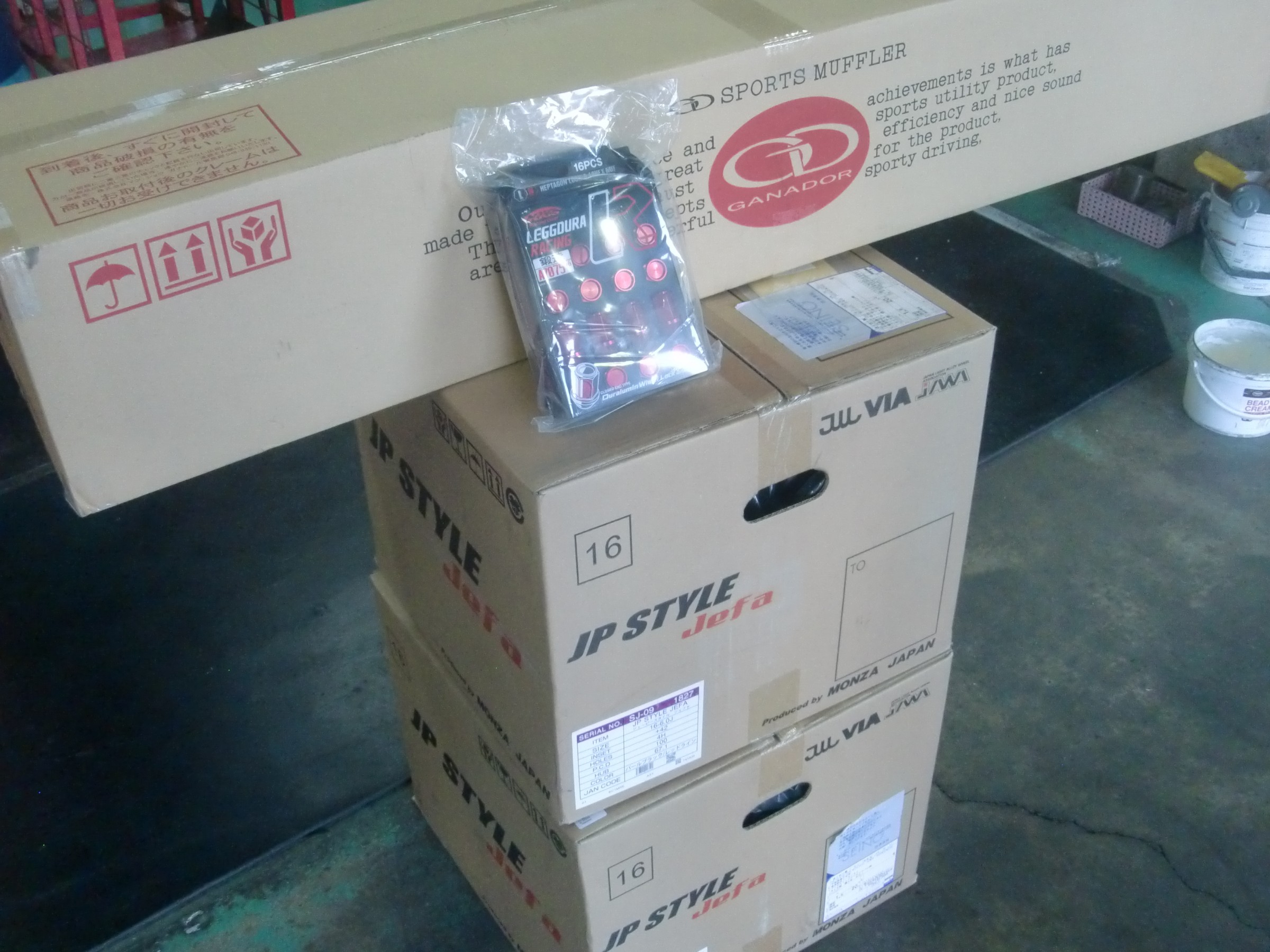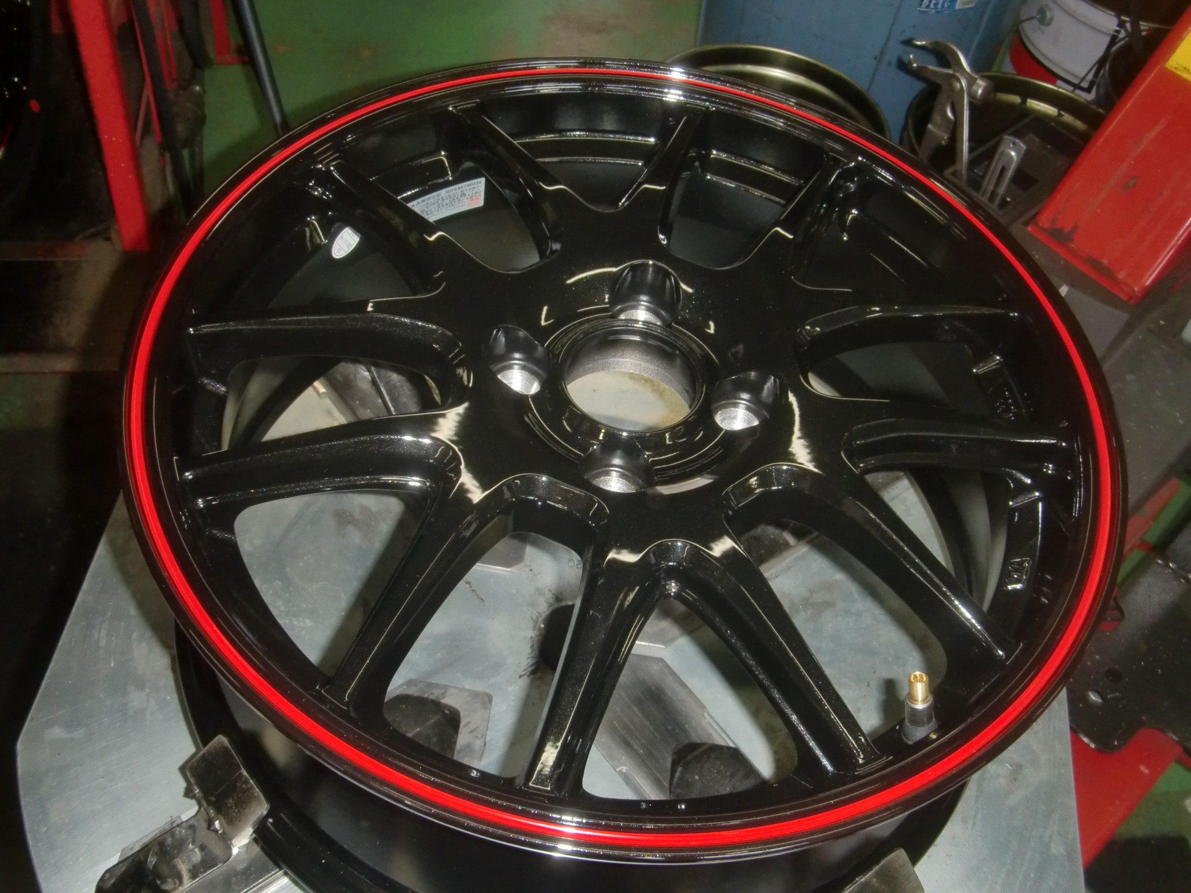 自分がマフラー交換している間に、他のスタッフはホイールを交換中!(タイヤは新車装着タイヤを流用!)