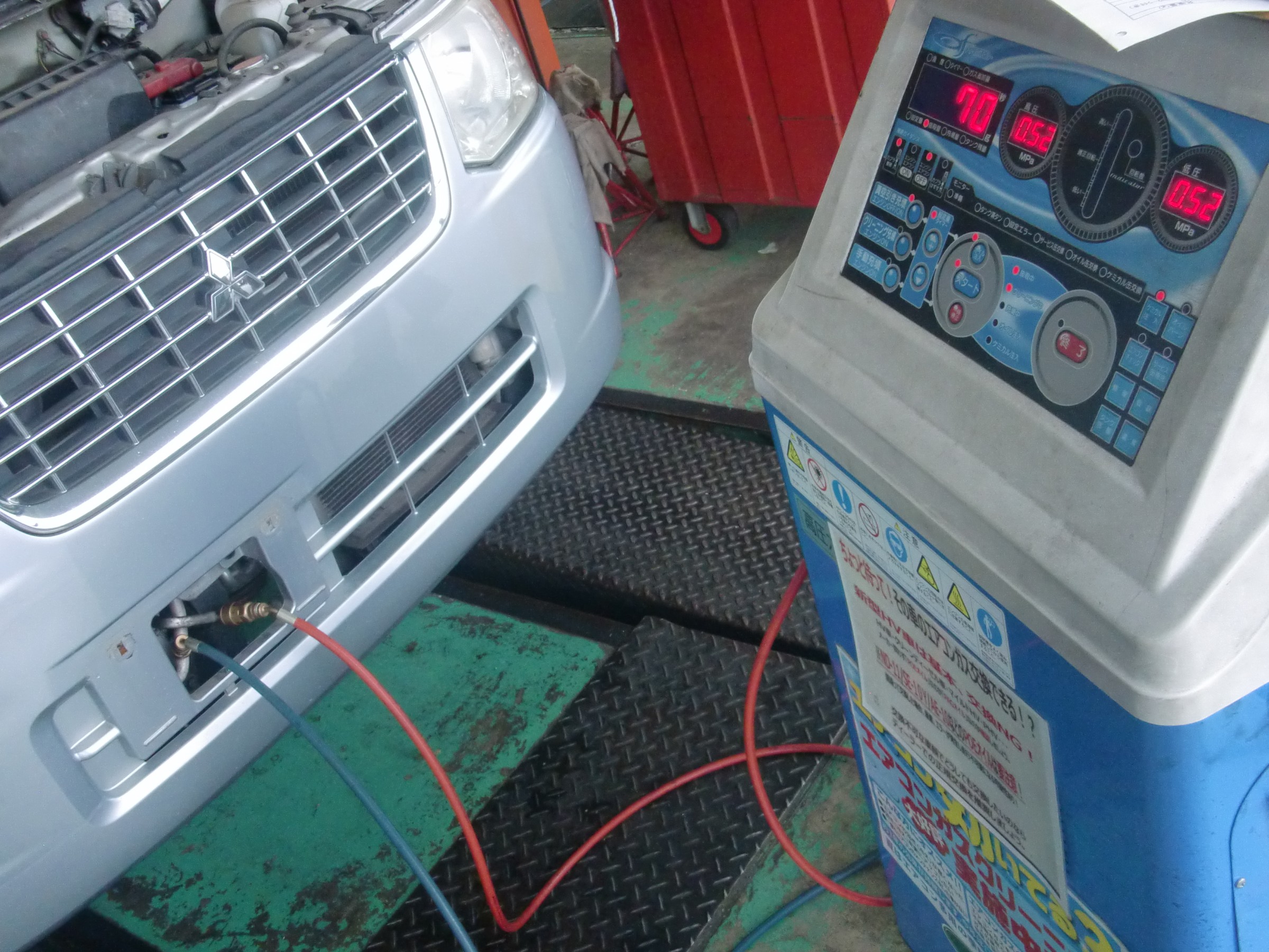 H82W型eKワゴン、エアコンガスクリーニング&エアコンガス添加剤!