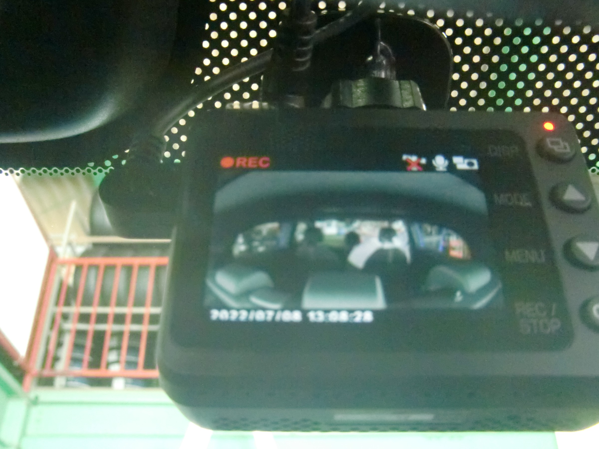 ピンボケしてしまっているのでボヤけて見えますが、実際のモニターははっきりくっきり映っています(ノ゚∀゚)ノ 対角162°の広角記録で広範囲をしっかり撮影!