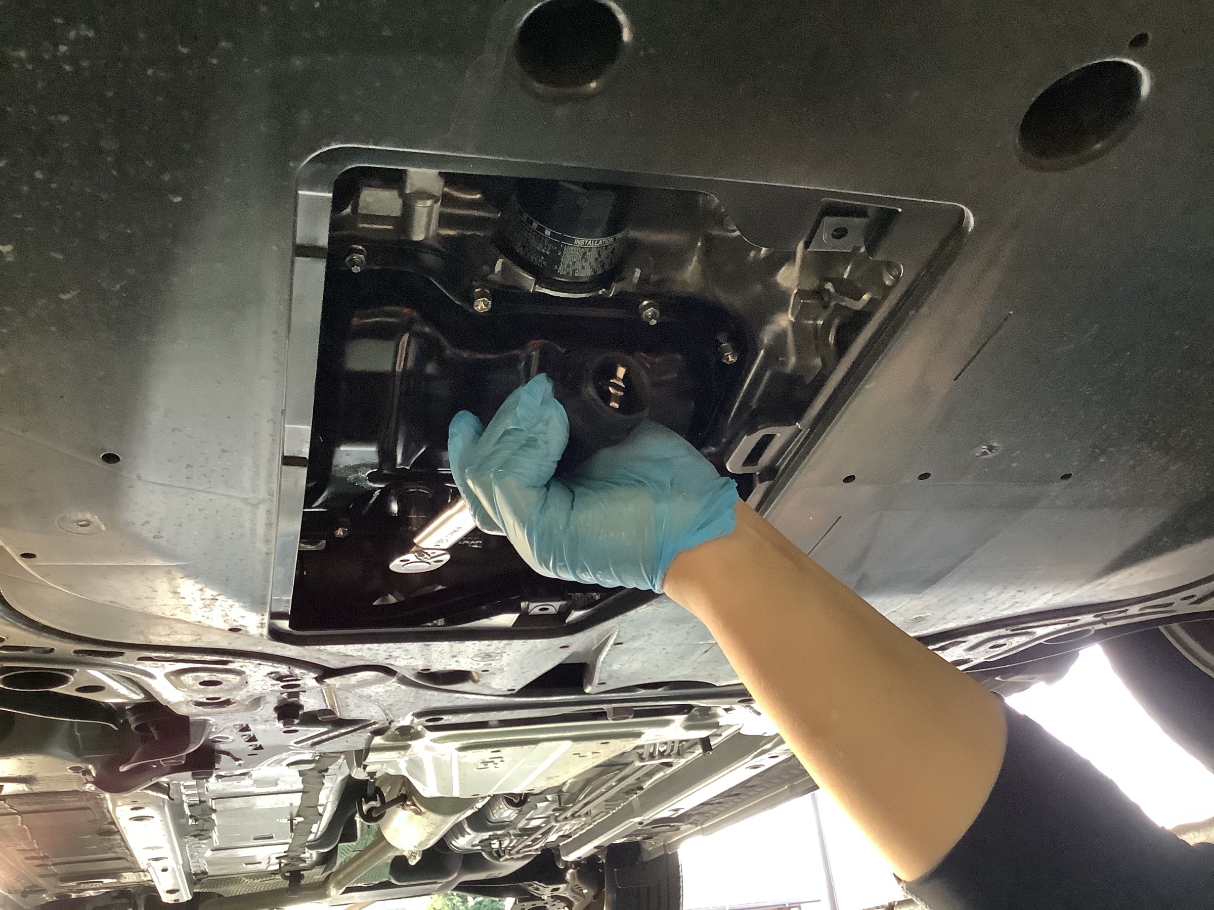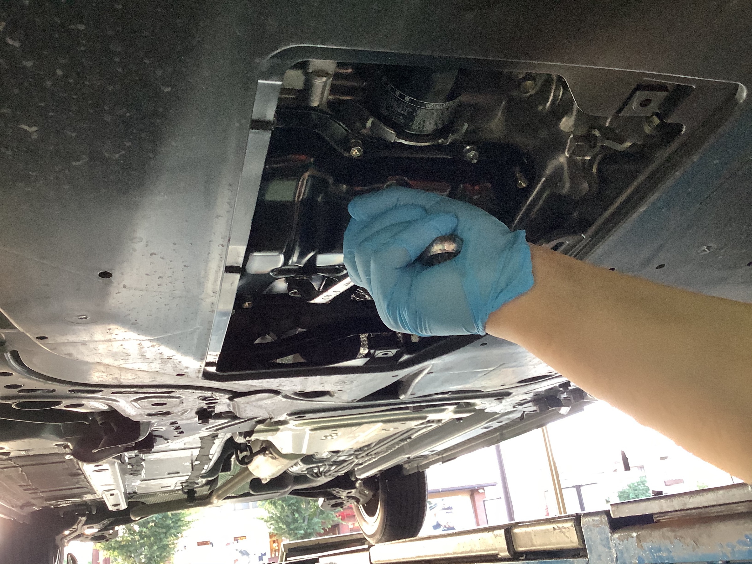 最後にドレンボルトからのオイル漏れなどの最終チェックを行います。