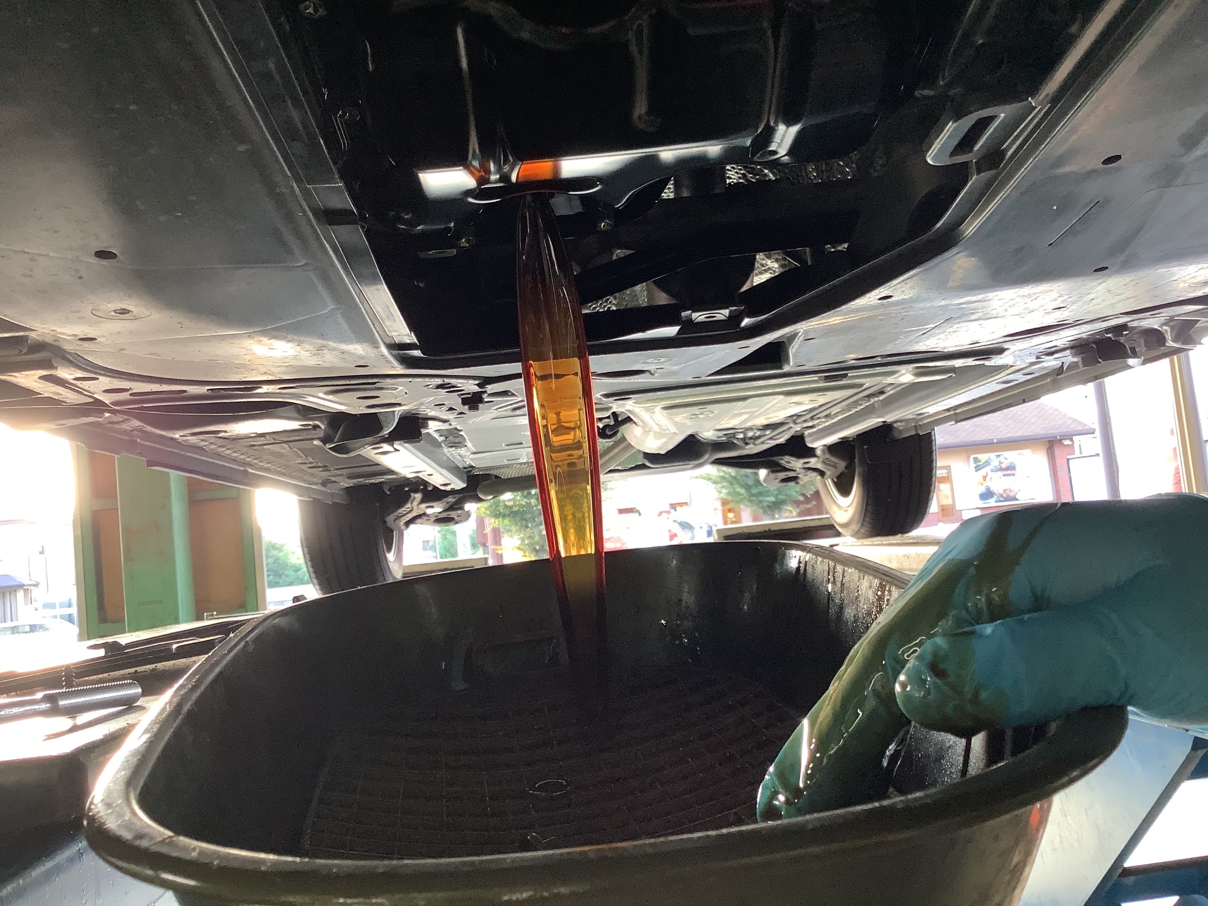 当店のオイル交換の手順をご紹介しましょう。まず交換前にオイルの量と汚れをチェックし、点検結果をお客さまに報告します。オイルフィラーキャップを外し、キズ等の痛みや水の混入を示す症状が無いかなども確認します。またオイルを抜くドレンボルト部のオイル漏れの確認も行います。