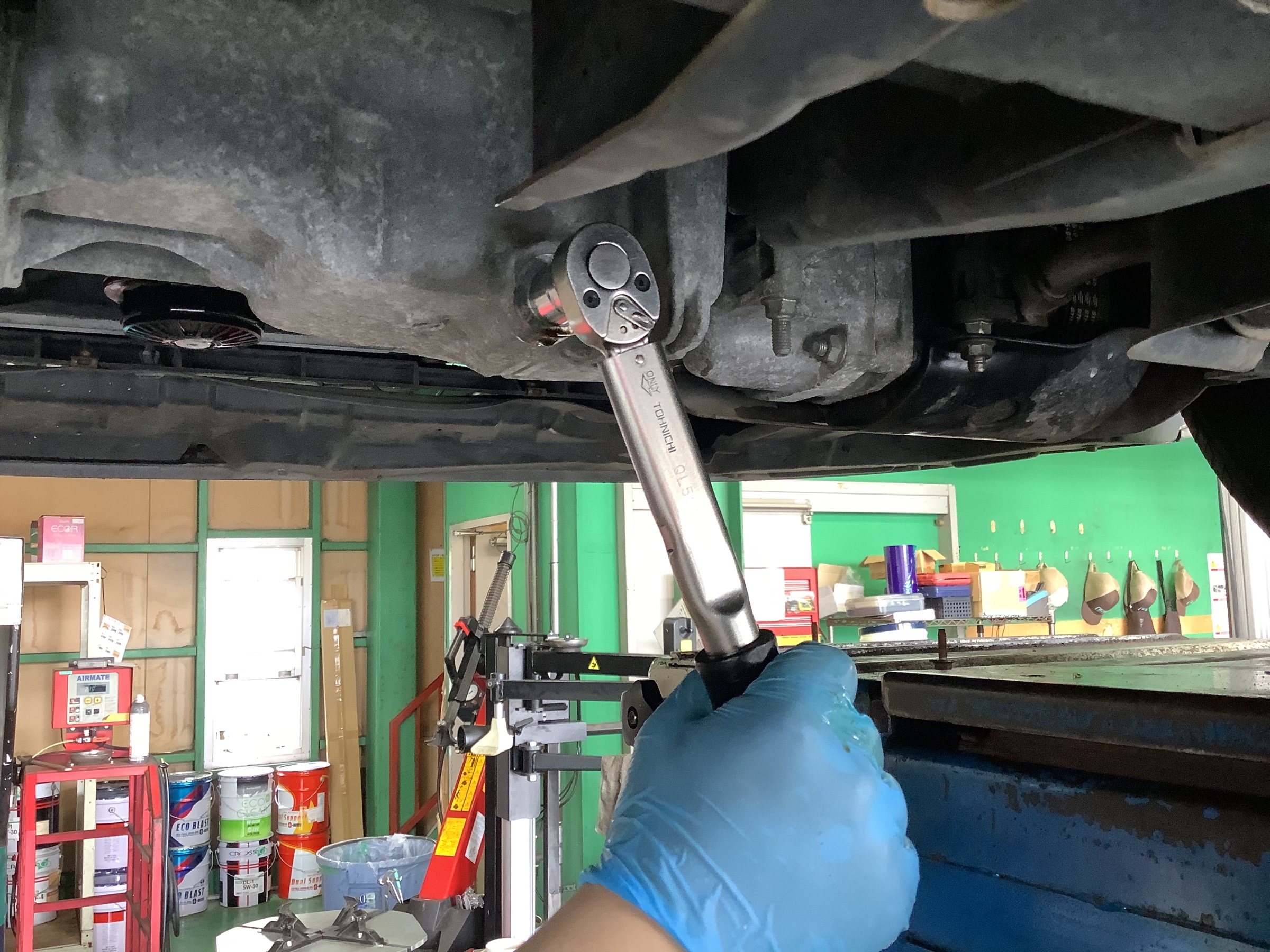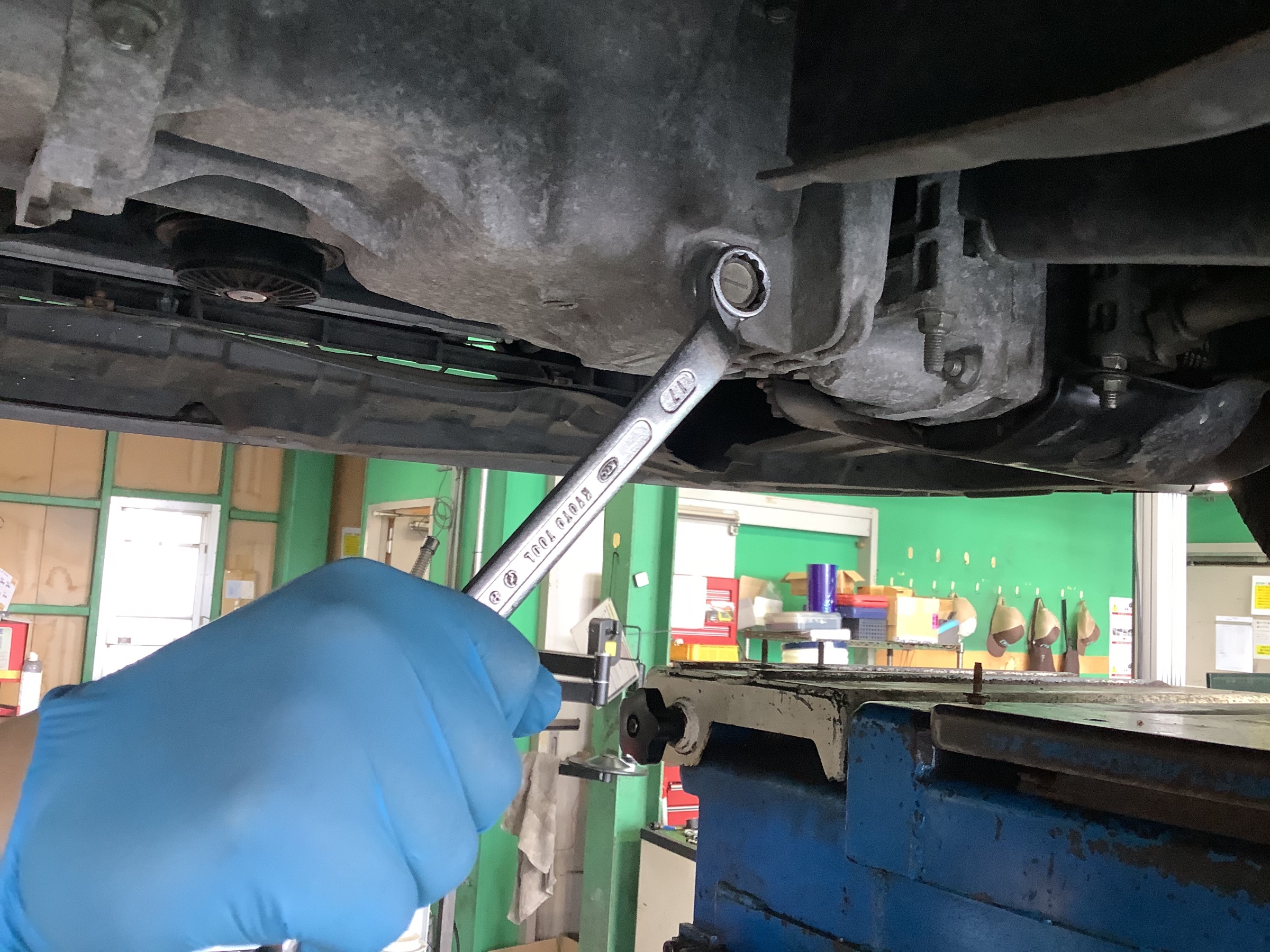 最後にドレンボルトからのオイル漏れなどの最終チェックを行います。