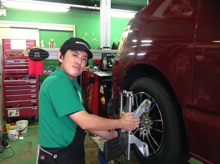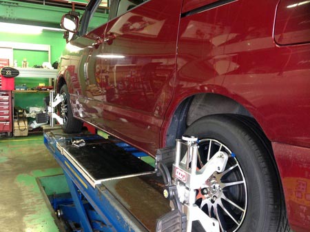 ノアにタイヤアルミホイールセット装着・アライメント実施