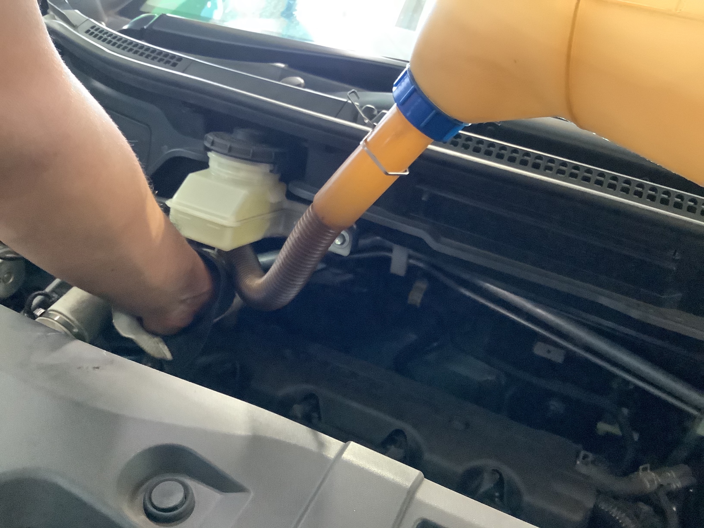 規定量のエンジンオイルを注入します。