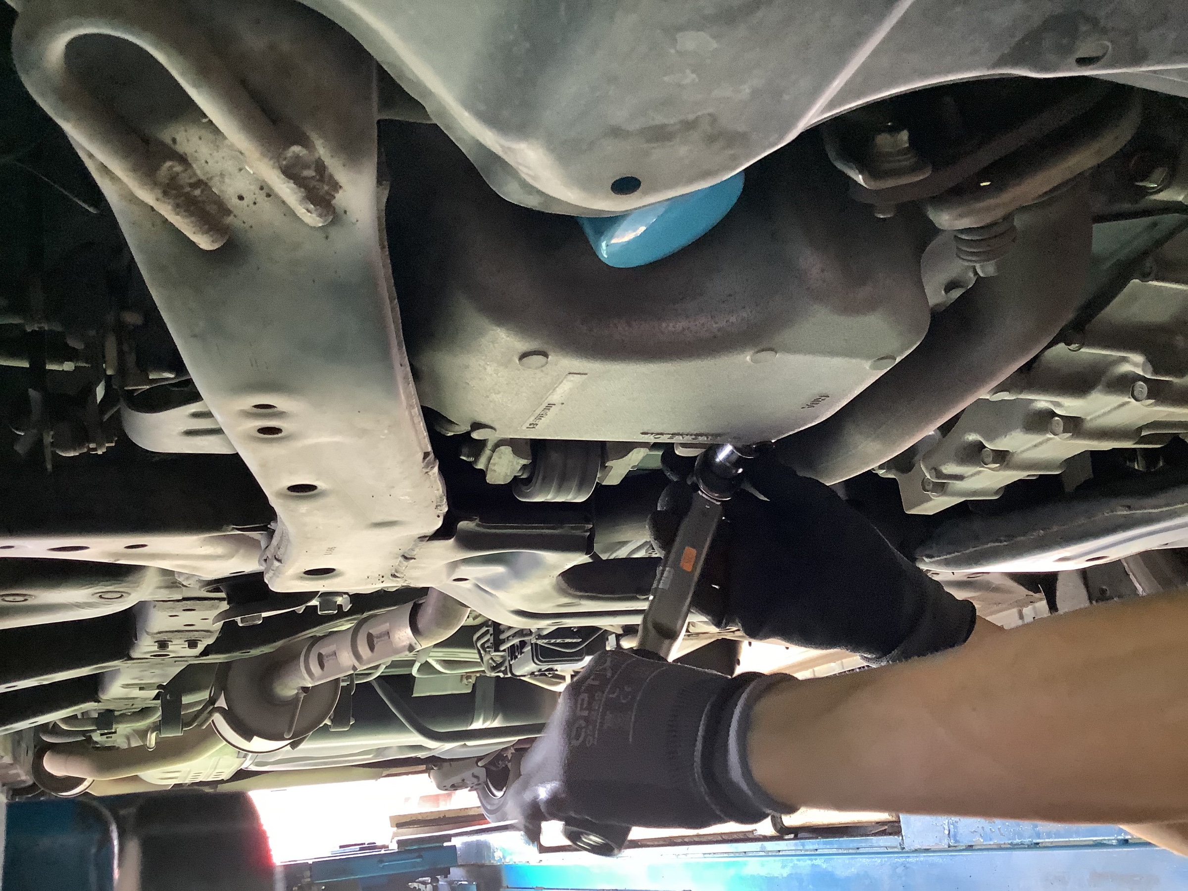 最後にドレンボルトからのオイル漏れなどの最終チェックを行います。