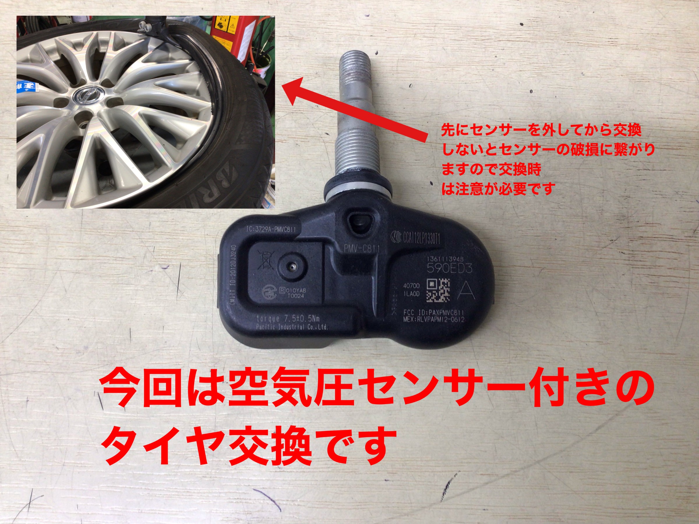 交換手順を間違えるとセンサー破損にも繋がりますしホイールに傷が付くこともありますのでしっかり手順を