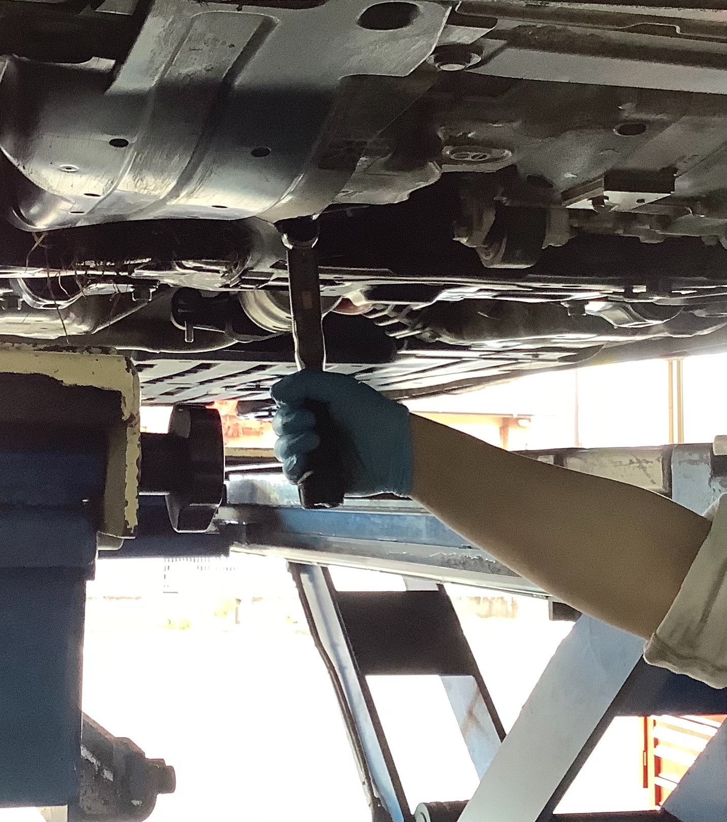 最後にドレンボルトからのオイル漏れなどの最終チェックを行います。