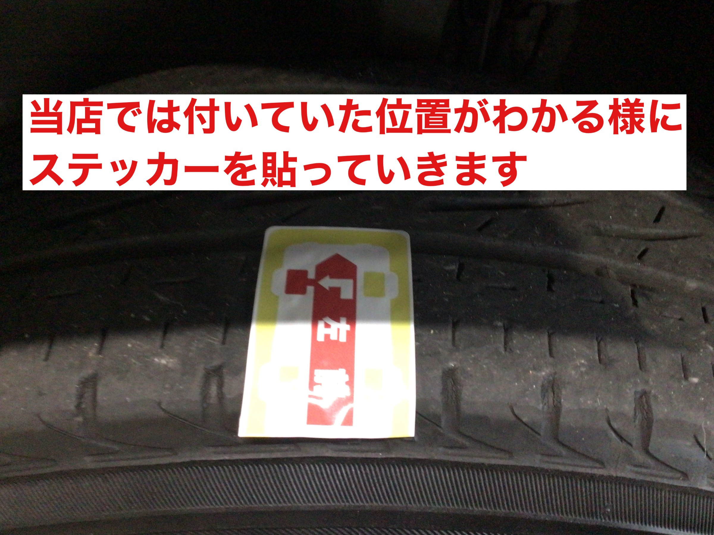 次回タイヤ取付時に困らない様当店では位置ステッカーを必ずお付けするようにしております