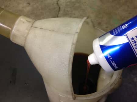 施工方法は二枚目写真のように、これから入れるエンジンオイルに混ぜて入れるだけ♪