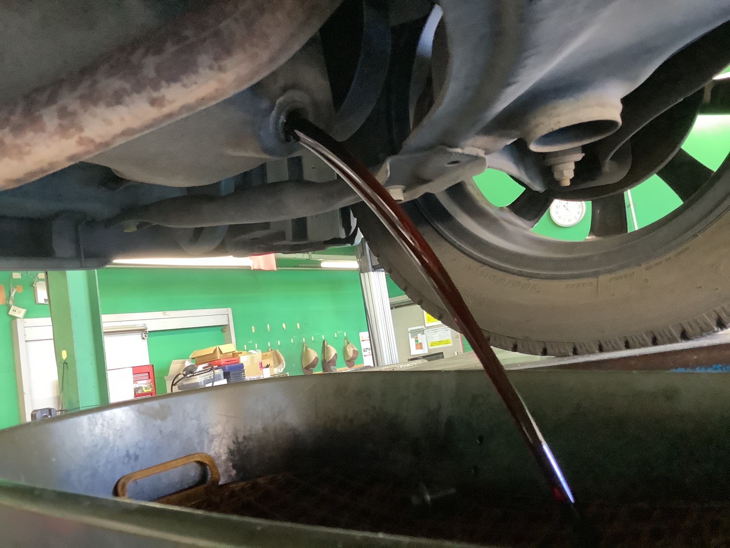 最後にドレンボルトからのオイル漏れなどの最終チェックを行います。