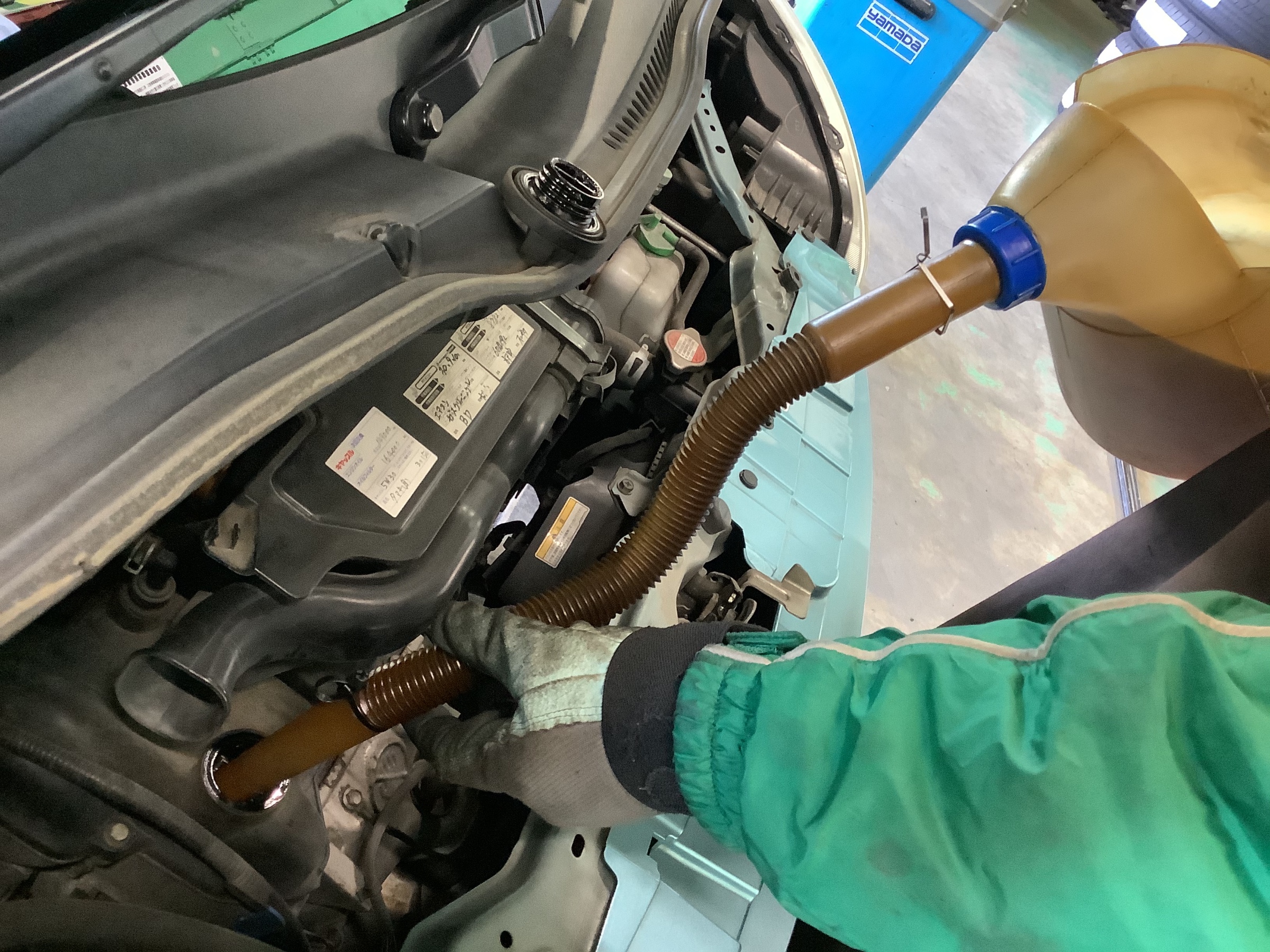 規定量のエンジンオイルを注入します。
