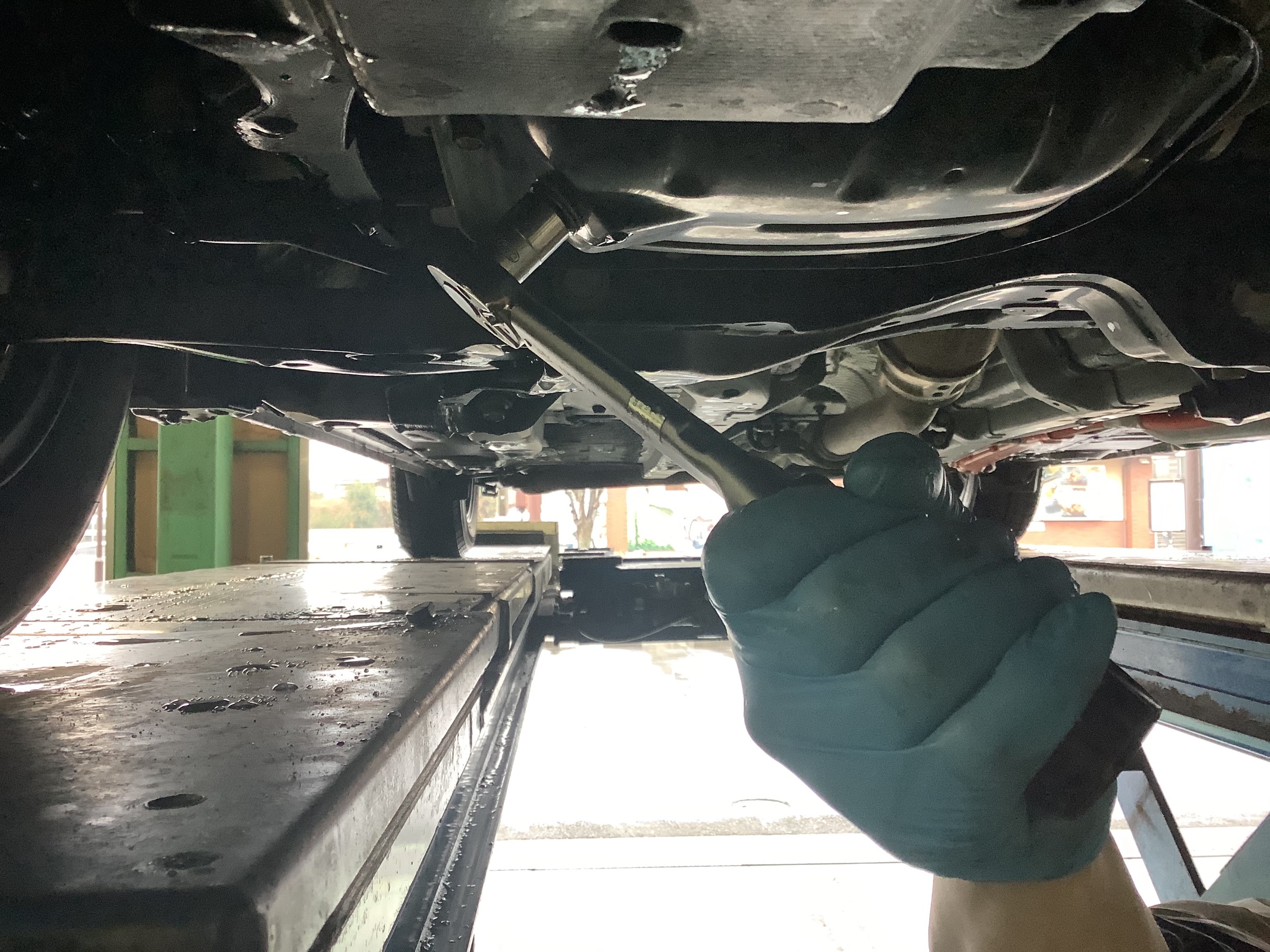 最後にドレンボルトからのオイル漏れなどの最終チェックを行います。