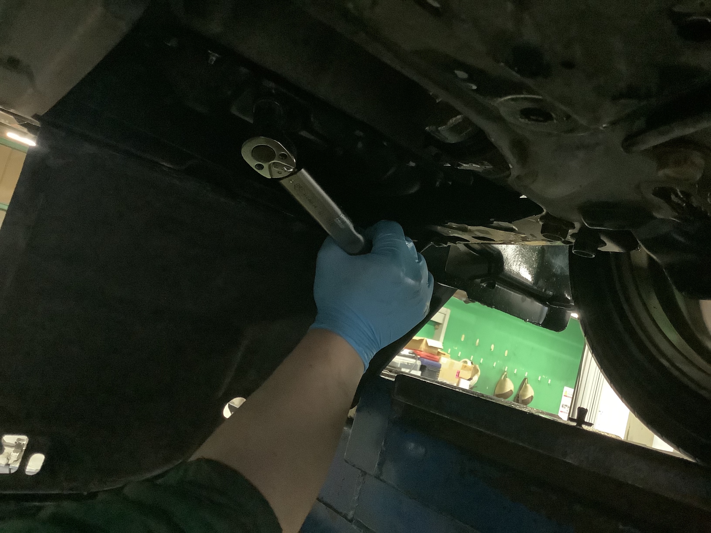最後にドレンボルトからのオイル漏れなどの最終チェックを行います。