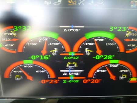 二枚目下のゲージが前のタイヤのつま先の向きなのですが、左右ともハンドルが真っ直ぐの状態で左を向いております!