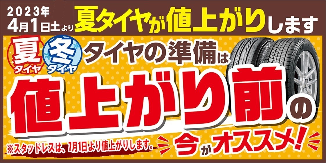 タイヤの値上がりお知らせ